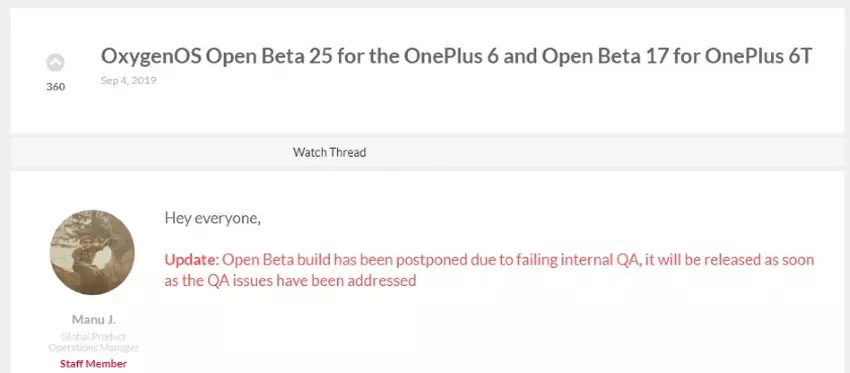 Nawiasem mówiąc, podobna sytuacja miała miejsce w przypadku właścicieli OnePlus 6 i OnePlus 6T. Firma obiecała wydać otwartą wersję beta nowego systemu operacyjnego dla smartfonów we wrześniu, ale wydanie zostało przełożone z powodu faktu, że oprogramowanie układowe nie przeszło oceny jakości. Przynajmniej OnePlus poinformował o tym użytkowników na oficjalnym forum.