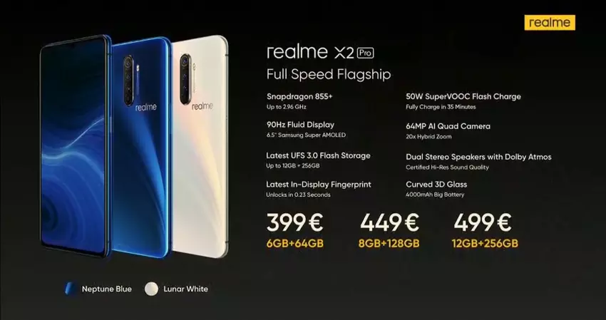 Ile będzie kosztować Realme X2 Pro z 50-watowym ładowaniem, ekranem 90 Hz i układem Snapdragon 855 Plus w Europie