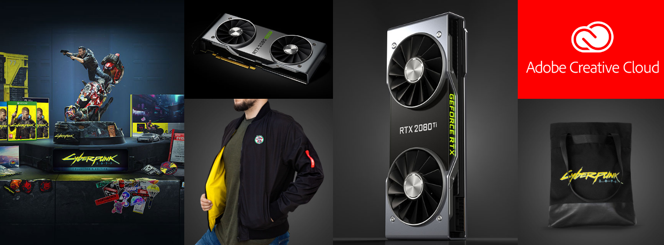 - Pierwsze miejsce - $ 4000, kolekcjonerska edycja Cyberpunk 2077 (po meczu), NVIDIA GeForce RTX 2080 Ti, licencja Adobe Creative Cloud oraz VIP-kurtka-bomber;