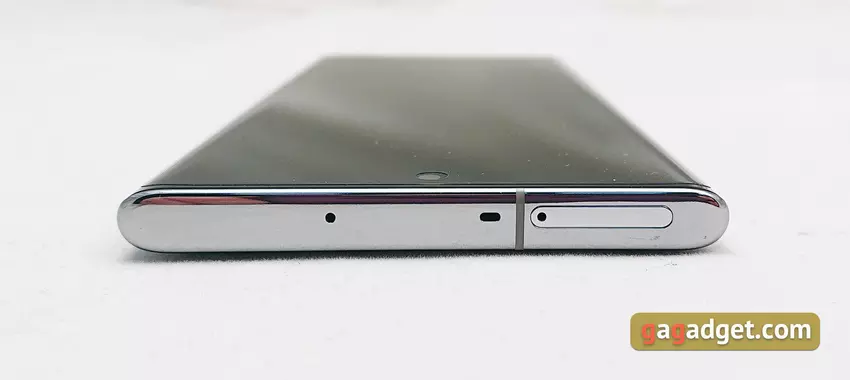 Na dole - pióro S Pen, mikrofon słuchawki, głośnik zewnętrzny i złącze USB Type-C oraz rysik S Pen. Niestety, nie ma złącza na 3,5 mm i adaptery innych firm, jak dowiedzieliśmy się z recenzji Galaxy Note10 +, nie działają: