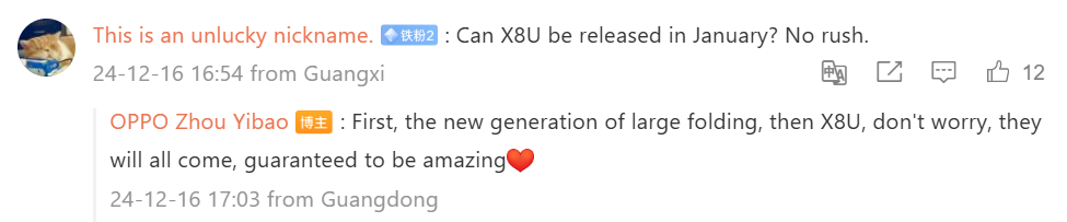 Komentarze Zhou Yibao na temat premiery Oppo Find N5 i Find X8 Ultra. Ilustracja: weibo