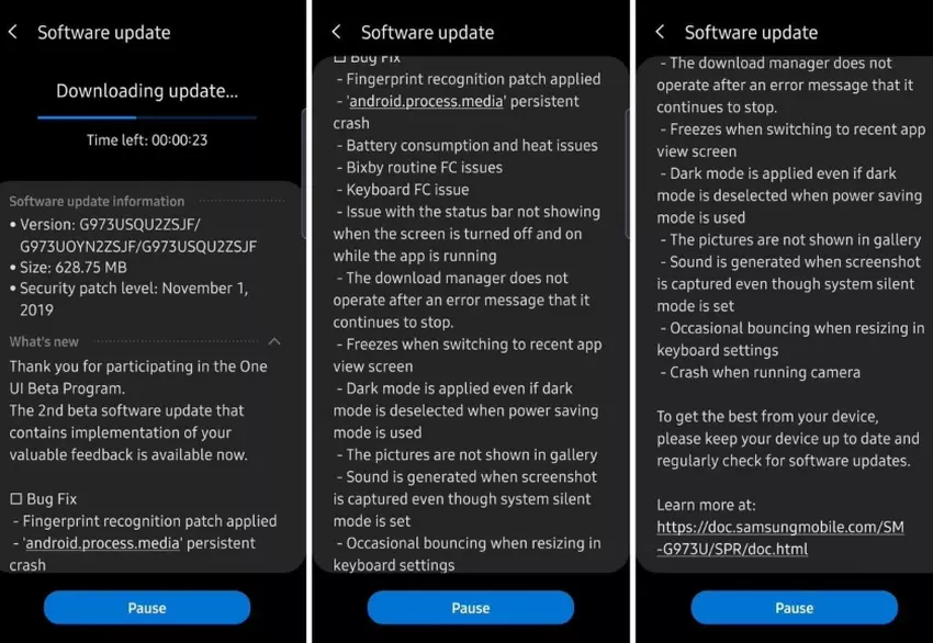 Aktualizację już zaczęli przyjmować uczestnicy testów w Niemczech, Korei Południowej i Stanach Zjednoczonych. Oprogramowanie układowe waży ponad 600 MB i ma odpowiednio numery G97 * FXXU3ZSJF, G97 * USQU2ZSJF i G97 * NKSU3ZSJF. W nim twórcy firmy pracowali nad błędami.