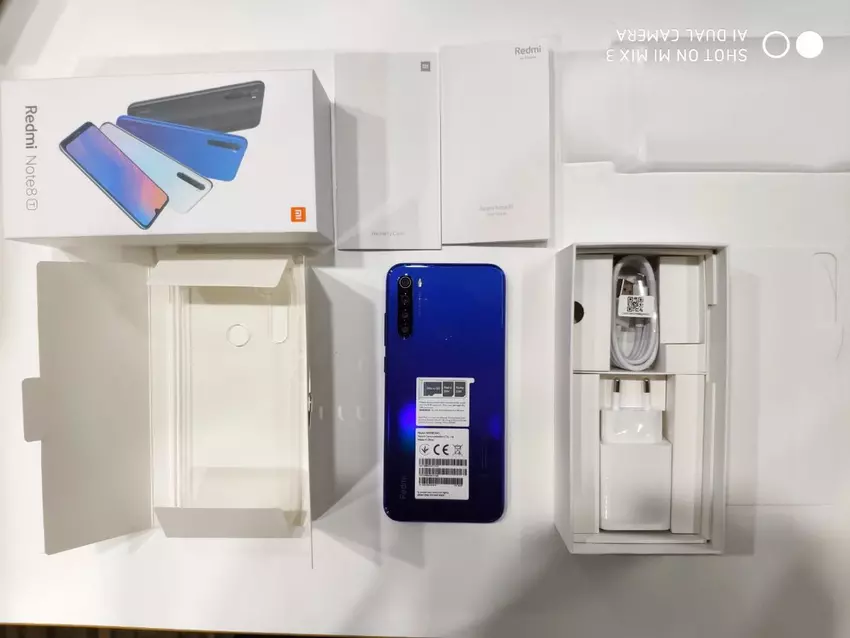 Na zdjęciu „na żywo” Redmi Note 8T pyszni się wraz z opakowaniem. Ponadto film transportowy ujawnia niektóre cechy smartfona.
