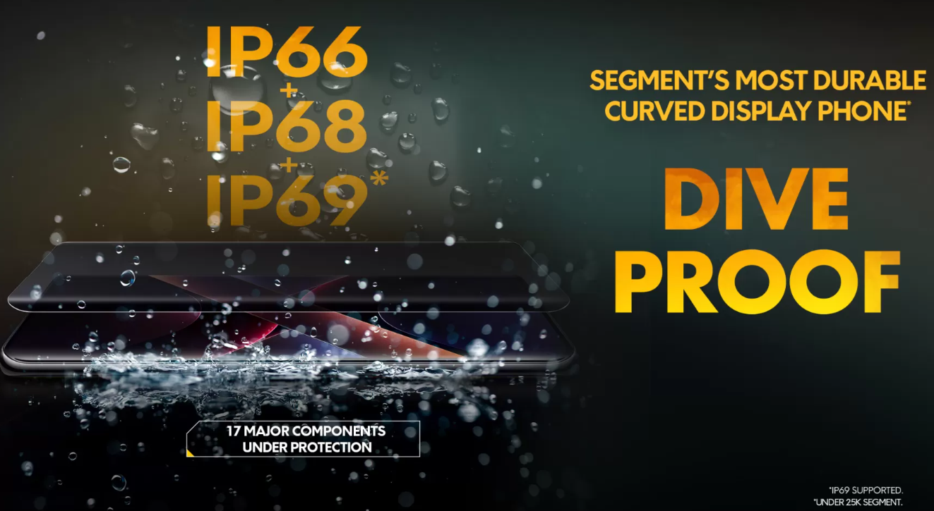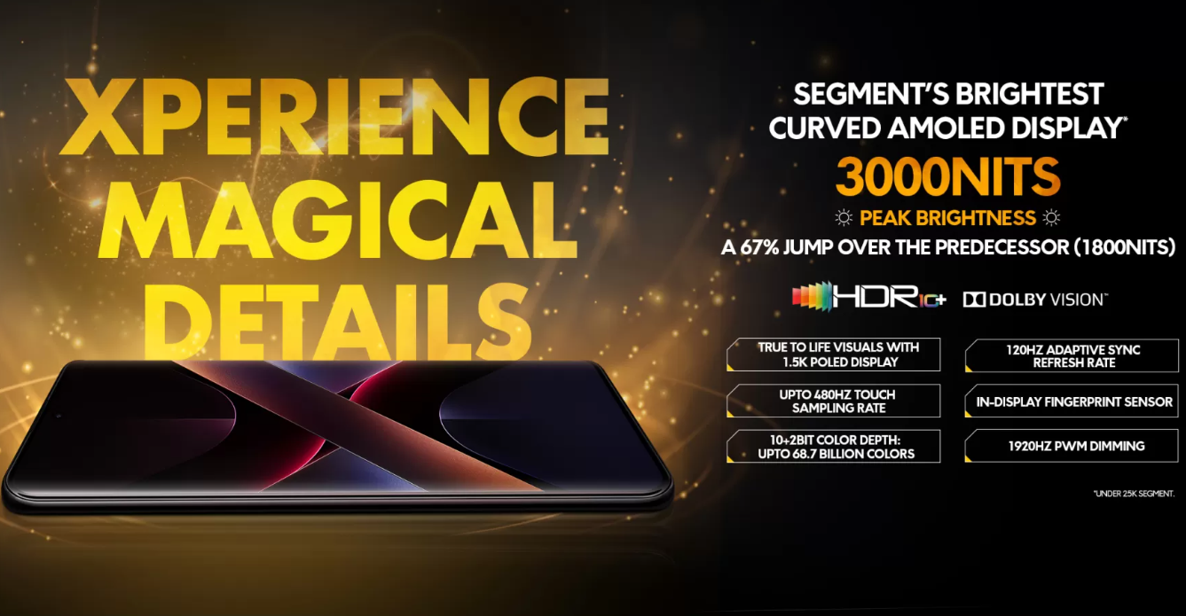 Poco X7 będzie podobno posiadał stopnie ochrony IP68 i IP69 oraz zakrzywiony wyświetlacz AMOLED 1,5K z adaptacyjną częstotliwością odświeżania 120 Hz i szczytową jasnością 3000 nitów. Ekran jest chroniony przez Gorilla Glass Victus 2 i obsługuje Dolby Vision i HDR10+. Flipkart donosi również, że smartfon jest wyposażony w skaner linii papilarnych pod ekranem.