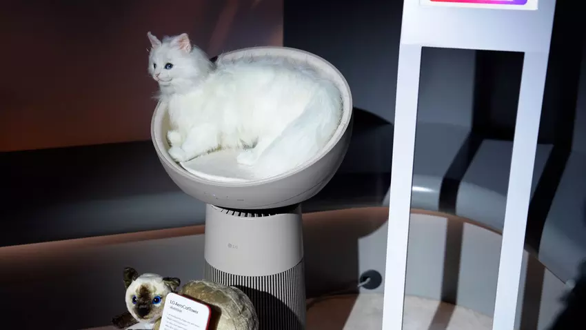 Złoty pierścień Ultrahuman. Ilustracja: Ultrahuman - LG AeroCatTower: To po prostu najlepsza rzecz dla właścicieli kotów i kocich niewolników. Jest to oczyszczacz powietrza wykonany dosłownie w kształcie kociej wieży. Urządzenie ogrzewa miejsce dla kota, waży go, filtruje kocią sierść, a także łączy się z systemem inteligentnego domu LG ThinQ, w którym można nawet zobaczyć, ile godzin kot spał. To urządzenie jest raczej niespodzianką: dlaczego ludzie pomyśleli o nim tak późno?