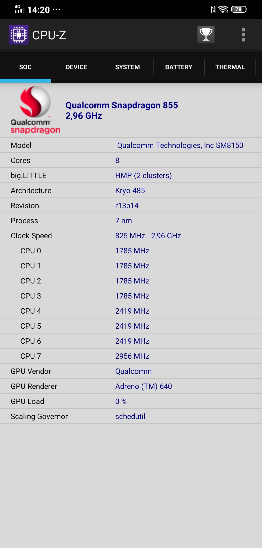 | edytor | 64-bit 7 nm Qualcomm Snapdragon 855 Plus: 1x2.96 GHz Kryo 485 3x2.42 GHz Kryo 485? 4x1.8 GHz Kryo 485, akcelerator graficzny Adreno 640 700 MHz |