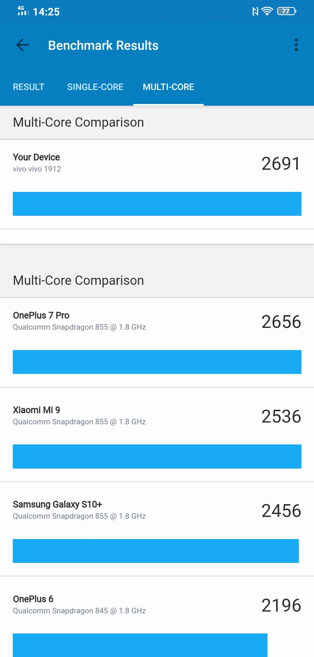 Smartfon ma obecnie najmocniejszy dostępny procesor Qualcomm. W każdym razie jeden z najpotężniejszych procesorów na rynku, Snapdragon 855+. Kiedyś został przedstawiony jako rozwiązanie do gier. Jeśli niczego nie mylę, Vivo NEX 3 jest nadal jedynym smartfonem w Snapdragon 855+, który jest oficjalnie sprzedawany u nas. Qualcomm Snapdragon 855+ to podkręcona wersja 855. smoka. Jest to procesor 7-nanometrowy z rdzeniem 1x2.96 GHz Kryo 485 (w standardowej wersji jego częstotliwość wynosi 2,84 GHz), 3x2,42 GHz Kryo 485 i 4x1,8 GHz Kryo 485. Akcelerator Adreno 640 odpowiada za podkręcenie do 700 MHz Twierdzi się, że wzrost wydajności grafiki wynosi 15%. Wydajny procesor uzupełnia 8 GB pamięci RAM i szybki 128 GB dysk UFS3.0. Niestety nie ma gniazda na MicroSD. Oczywiście nie może być żadnych pytań dotyczących wydajności. Na pewno rezerwa mocy wystarczy na kilka lat. W testach syntetycznych smartfon wykazuje bardzo wysokie wyniki i jest jednym z liderów w rankingach:
