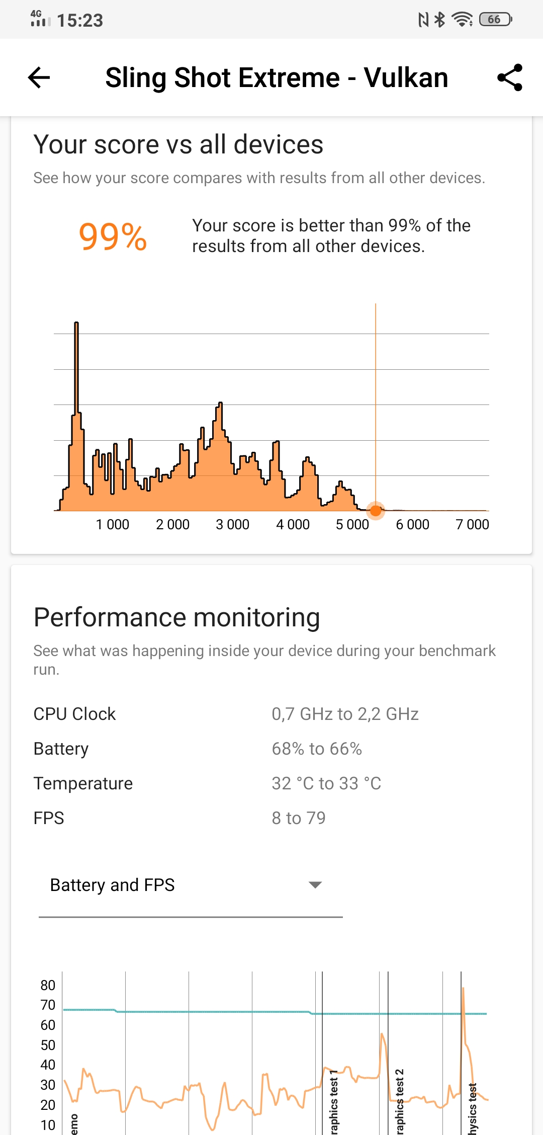 Osobno warto zauważyć, że system działa stabilnie, a smartfon nie nagrzewa się przy dużych obciążeniach. Smartfon wykorzystuje system chłodzenia z komorą odparowywania, w teście warunków skrajnych widać, że praktycznie nie dochodzi do przegrzania i dławienia nawet przy długotrwałym obciążeniu.