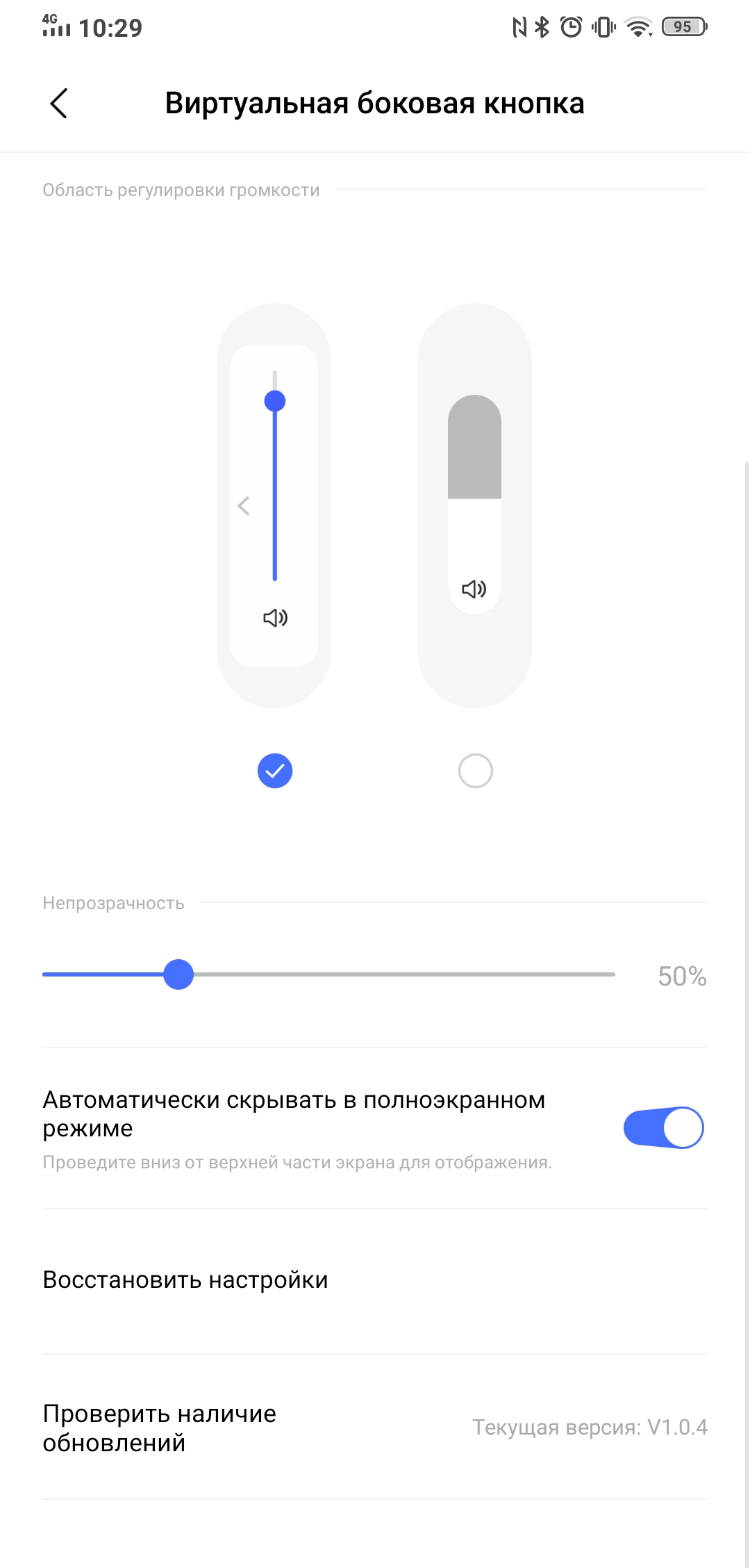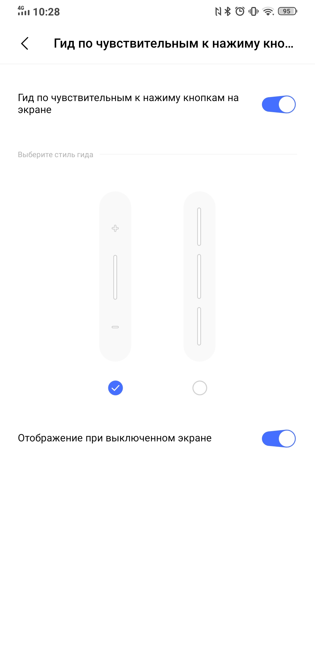 Istnieje również szereg ustawień wirtualnych przycisków Touch Sense. Możesz włączyć (lub wyłączyć) wskazówki wizualne na ekranie, dostosować ich przezroczystość i włączyć ustawienia wywołania głośności za pomocą wirtualnego przycisku na ekranie. Plus jest ustawienie czułości przycisku.