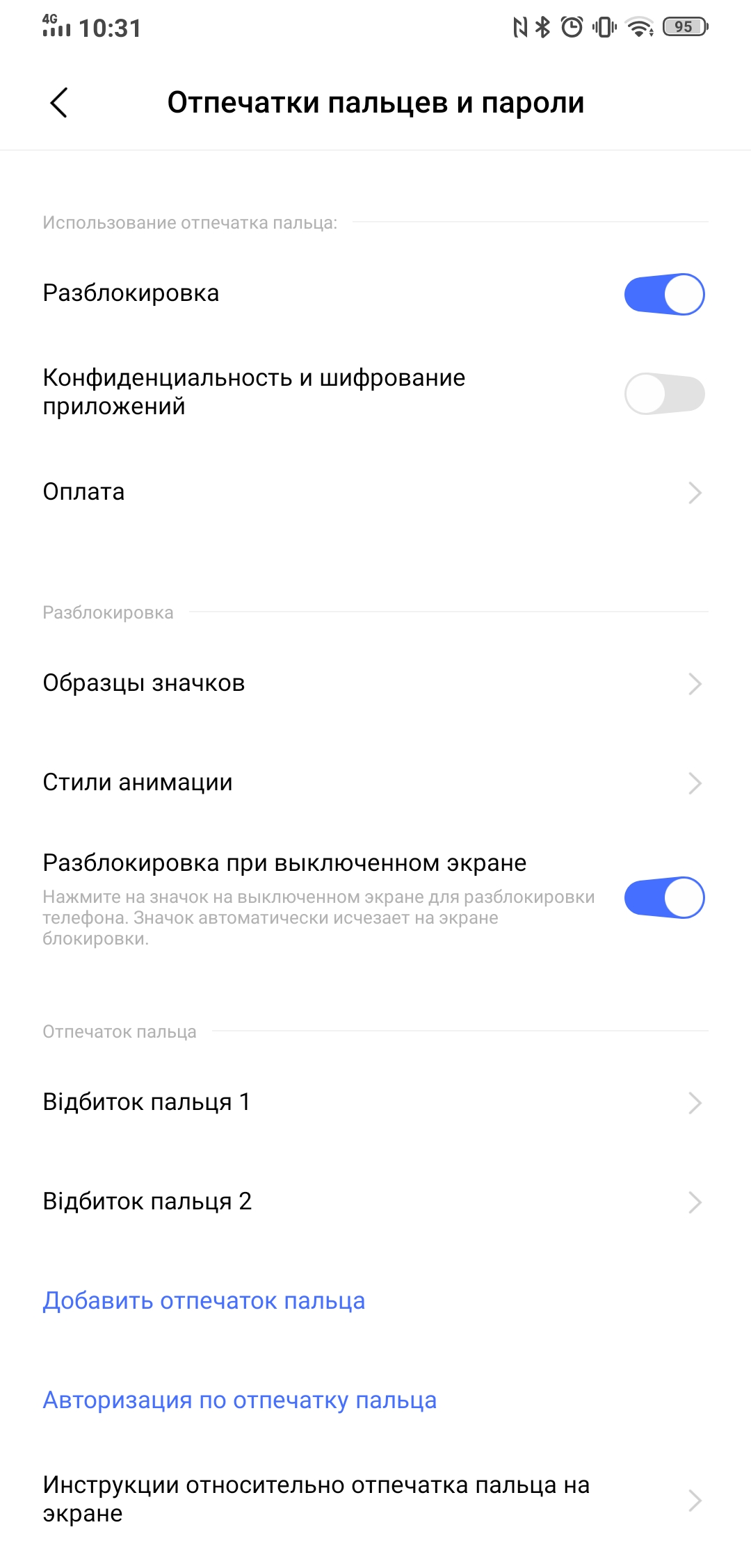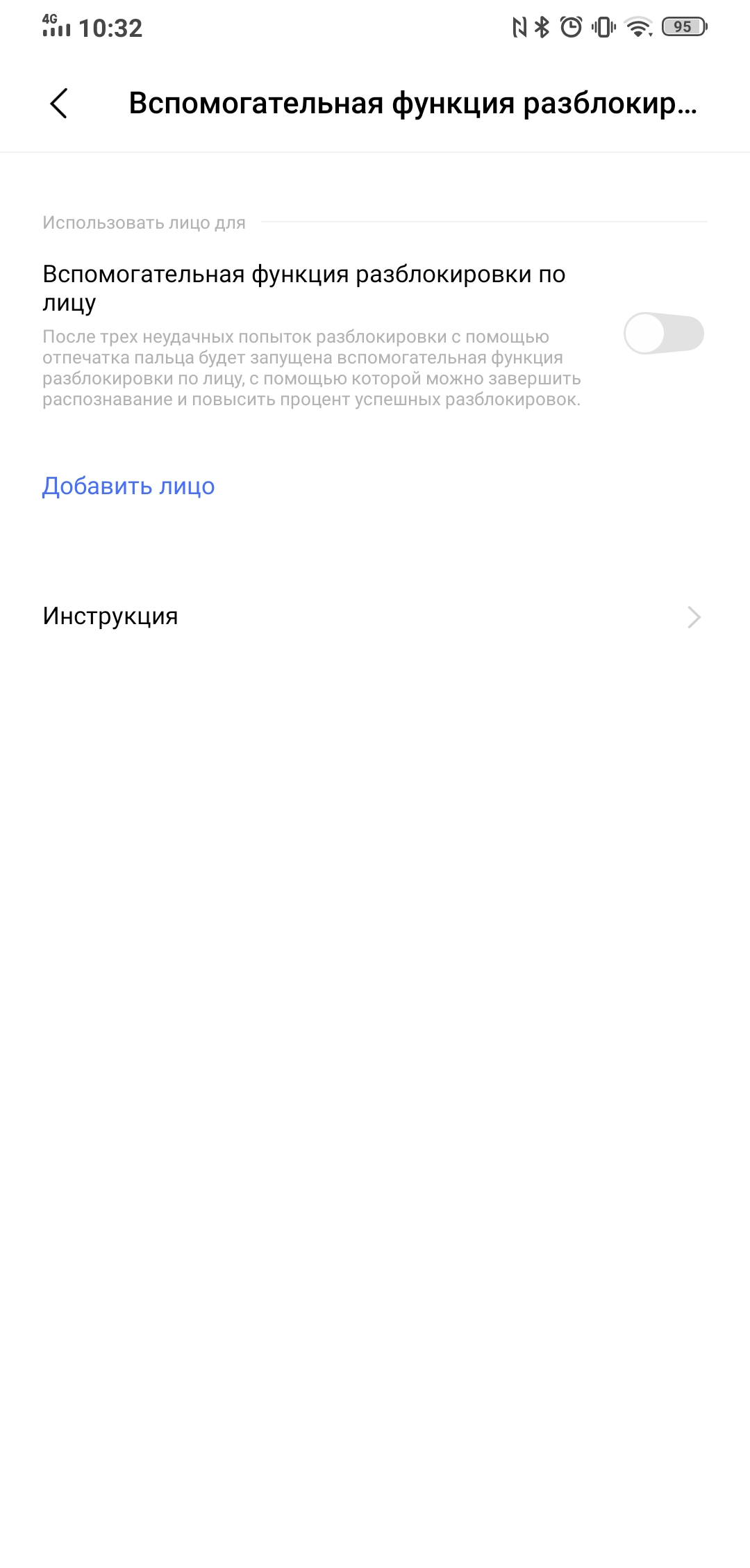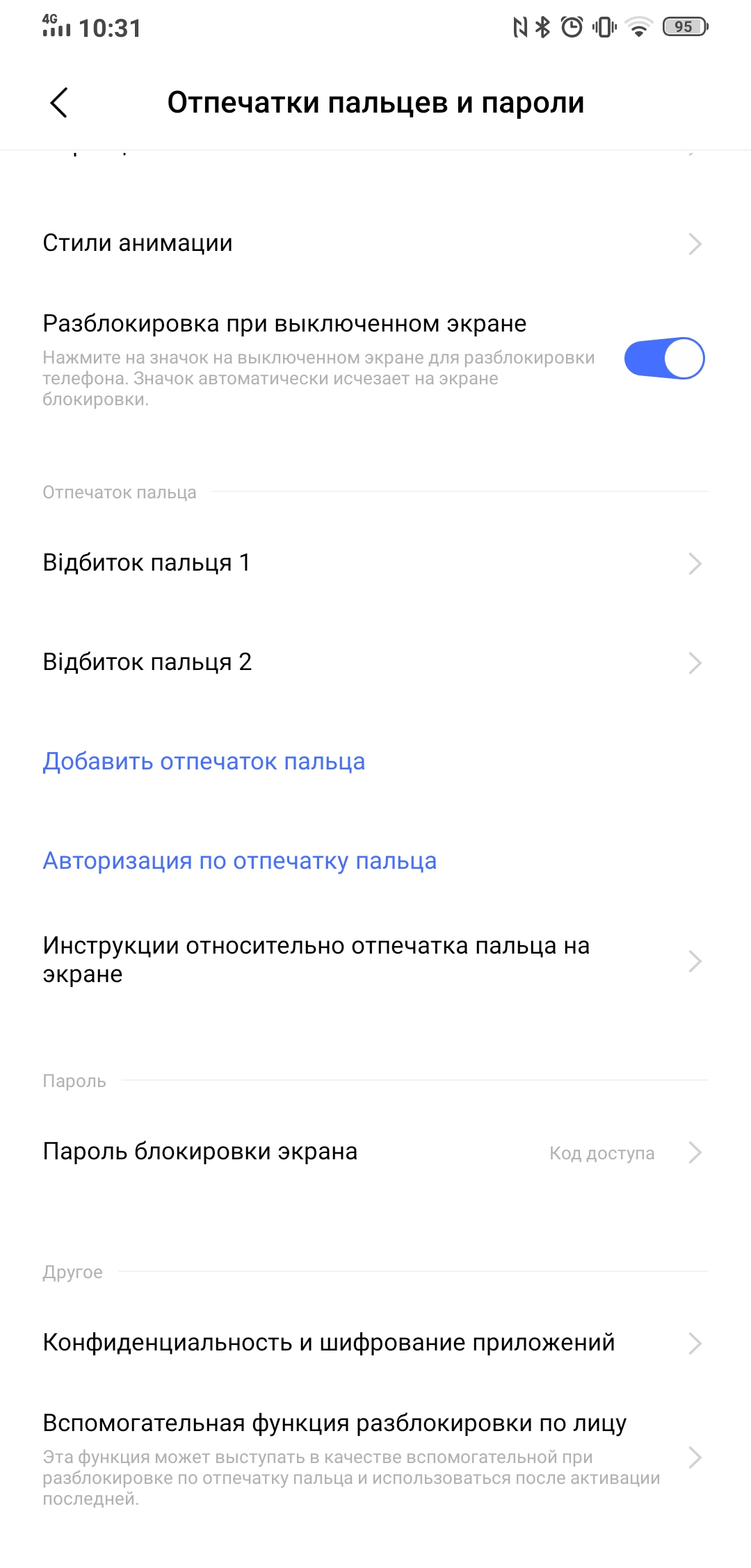 Aby odblokować smartfon, możesz użyć skanera linii papilarnych na wyświetlaczu i funkcji rozpoznawania twarzy. Co ciekawe, w ustawieniach funkcja rozpoznawania twarzy jest wskazana jako pomocnicza. Ale już tam jest i działa, choć niezbyt inteligentnie: kamera musi wyjść, a samo skanowanie wykonuje się tylko przednią kamerą. Brak dodatkowych czujników. Skaner linii papilarnych w smartfonie jest optyczny (palec jest podświetlany podczas skanowania). Działa szybko i dokładnie, nie zaobserwowano żadnych problemów podczas użytkowania z nim.