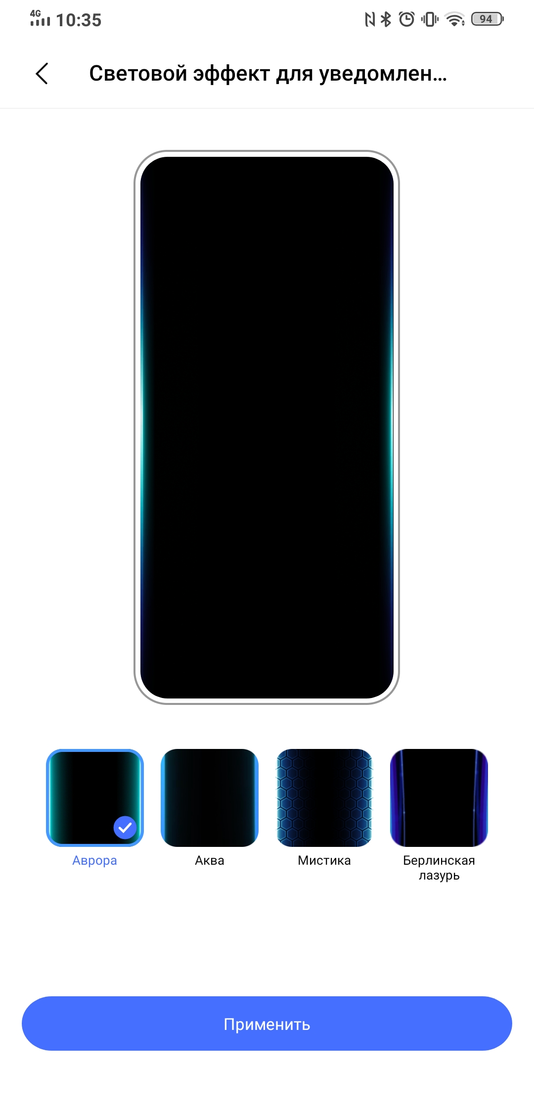 Jest też ciekawa rzecz o nazwie „Efekty świetlne otoczenia”. Mówiąc najprościej, na zakrzywionych krawędziach ekranu wyświetlane są różne efekty powiadomień i połączeń: