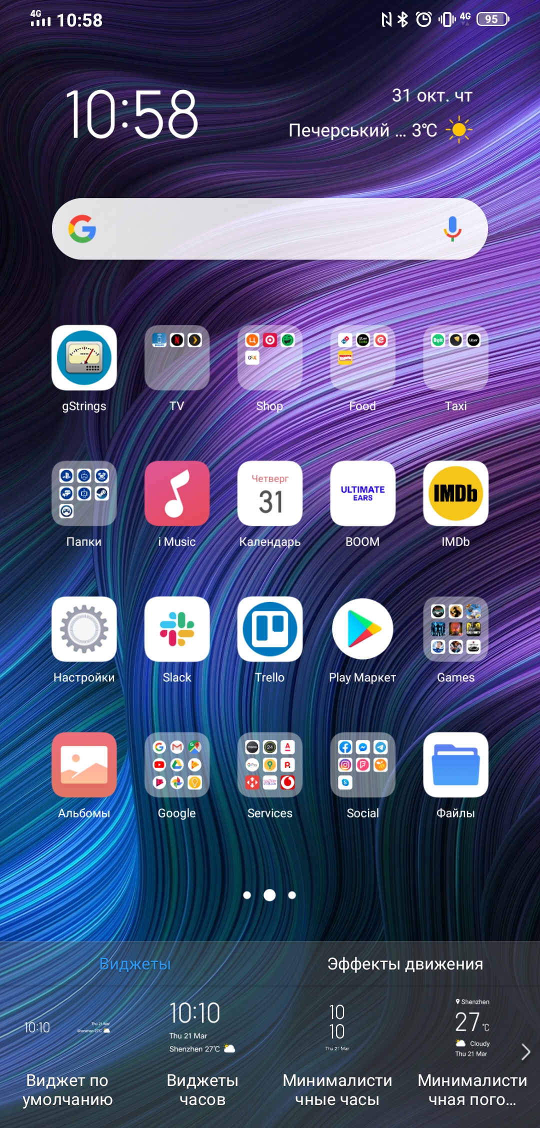 Menedżer aplikacji jest wykonany jak zwykle, w postaci poziomych kart. Możliwe jest przypięcie aplikacji lub włączenie trybu podzielonego ekranu z poziomu dyspozytora. Chociaż do tego smartfon ma jeszcze kilka opcji: