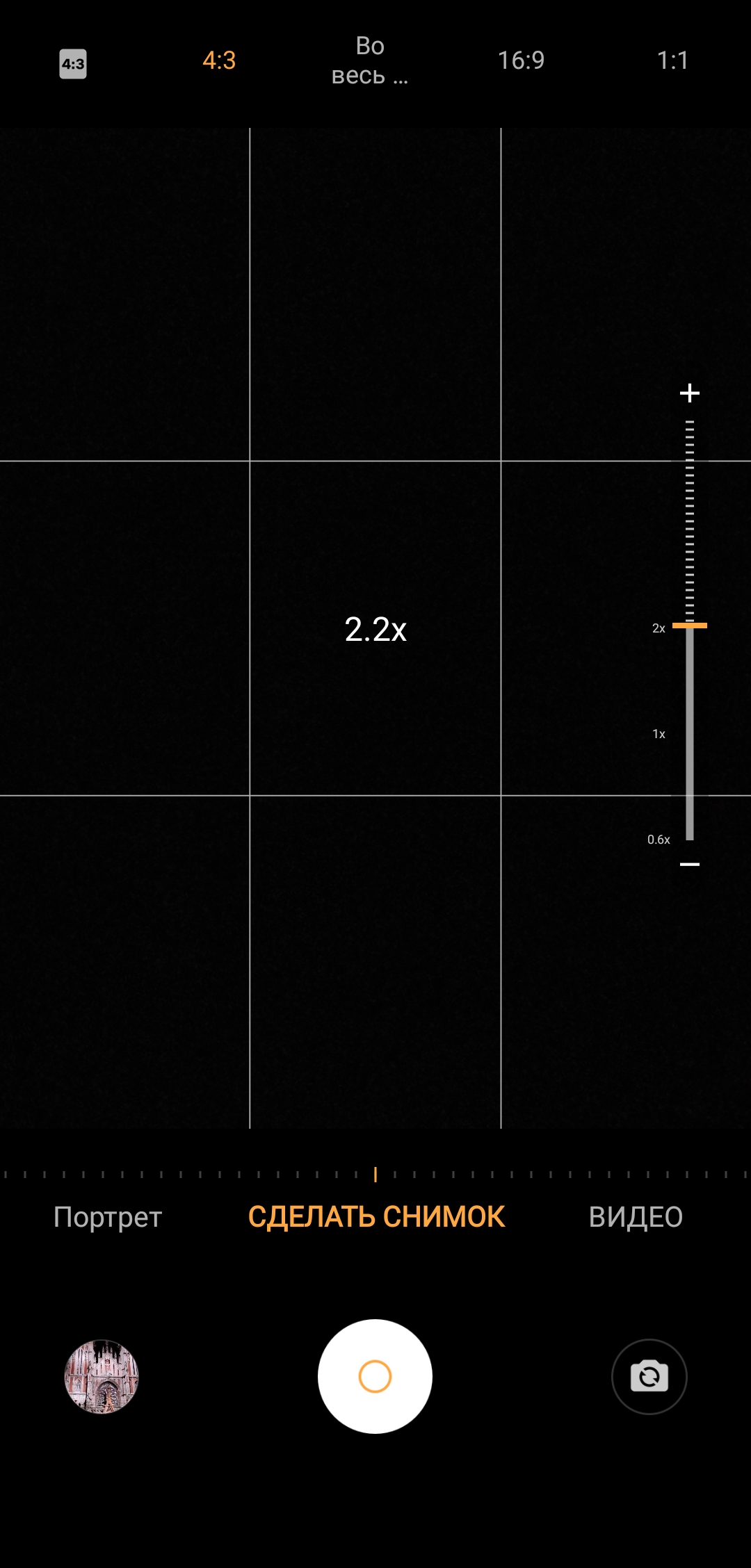 Główna kamera składa się z trzech modułów. Głównym jest nowy Samsung ISOCELL Bright GW1 z 64 megapikselami (1 / 1,7 "0,8µm) z aperturą f / 1.8. Podstawowa idea jest podobna do Quad Bayer: łączenie czterech pikseli tego samego koloru w jeden. Quad Bayer jest używany w modułach Sony. Samsung nazwał to TetraCell, wynikiem są zdjęcia 16 megapikselowe, chociaż możesz także włączyć 64 megapiksele, jeśli chcesz, dodatkowo zainstalowano 13-megapikselowy moduł teleobiektywu z przysłoną f / 2.5, aby zapewnić 2x zoom i 13-megapikselowy ultraszerokokątny f / 2.2. Wszystkie trzy moduły mają fazę autofocus (w tym sherokokątny moduł), ale najwyraźniej bez optycznej stabilizacji. Aplikacja kamery jest ogólnie zrozumiała, chociaż występują pewne drobne problemy. Tryby są przełączane przez zwykłe ruchy poziome. Na ekranie głównym znajdują się ustawienia lampy błyskowej, filtrów, współczynnika kształtu, przejścia do ustawień i HDR. Nie ma automatycznego HDR: tylko włączenie lub wyłączenie Przełącznik kamery jest trzypozycyjny, znajduje się po prawej lub na dole ekranu, czyli w każdym razie jest daleko od przycisku migawki i czasami nie jest to zbyt wygodne, szczególnie w orientacji poziomej. Również na ekranie głównym znajduje się mały okrągły przycisk asystenta. Klikając na niego, możesz zobaczyć i przełączyć się do trybów oferowanych przez smartfon dla konkretnej sceny.