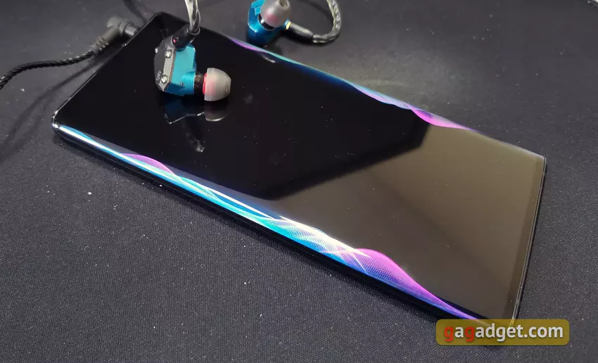 Interfejsy: dwuzakresowy Wi-Fi 802.11 a / b / g / n / ac 2,4 GHz i 5 GHz, Bluetooth 5.0 LE, globalne systemy pozycjonowania GPS, GLONASS, Beidou, Galileo. Niestety smartfon nie emituje dźwięku stereo z głośników, ale głośnik zewnętrzny jest całkiem dobry, zarówno pod względem głośności, jak i jakości. Firma postanowiła nie rezygnować z gniazda słuchawkowego, ponadto zainstalowała przetwornik cyfrowo-analogowy ze wzmacniaczem Asahi Kasei AK4377A w smartfonie. Tak, jak na standardy odtwarzaczy „audiofilskich”, jest to bardzo skromna decyzja, ale jeśli chodzi o smartfona, nie jest zła. Dźwięk w słuchawkach jest naprawdę bardzo dobry, według tego wskaźnika smartfon jest jednym z najciekawszych obecnie flagowców. Spośród fajnych układów, które firma zrealizowała ze względu na zakrzywione boki ekranu - możliwość włączenia rodzaju wizualizatora, który działa podczas odtwarzania muzyki.