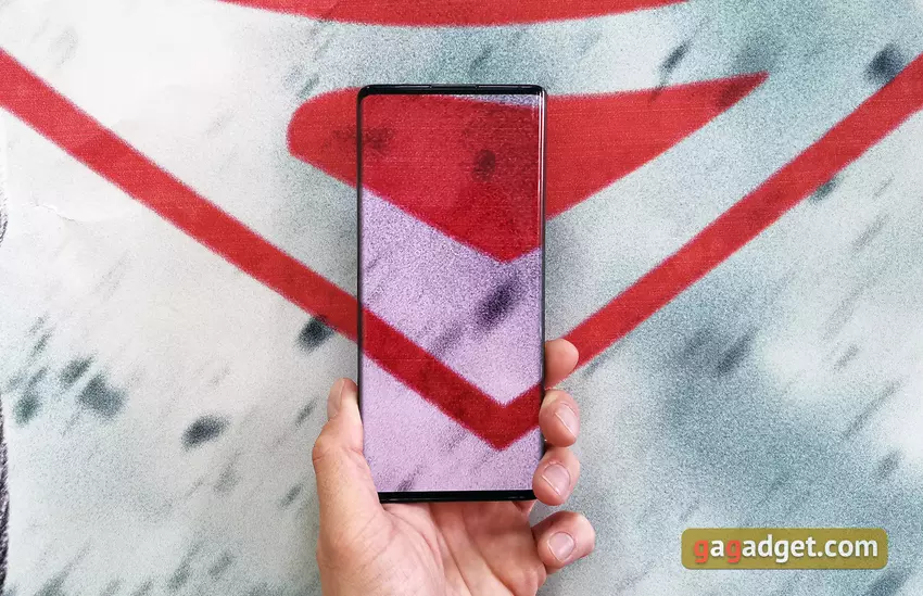 Smartfon ma ogromny 6,89-calowy ekran POLED o zakrzywionych bokach. Rozdzielczość wynosi 2256 × 1080 (FullHD +), gęstość pikseli wynosi 363 ppi, obsługiwany jest HDR10. Pod względem możliwości, funkcji i ustawień jest wszystko, co powinno być w nowoczesnym smartfonie z ekranem OLED. Dostępne są standardowe ustawienia rozmiaru czcionki, jasności i ochrony oczu. Dodatkowo istnieje ciemny interfejs, funkcja redukcji migotania (pod nazwą DC Dimming) oraz ustawianie trybów wyświetlania i temperatury kolorów: