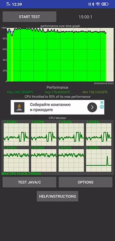 Osobno warto zauważyć, że system działa stabilnie, a smartfon nie nagrzewa się przy dużych obciążeniach. Smartfon wykorzystuje system chłodzenia z komorą odparowywania, w teście warunków skrajnych widać, że praktycznie nie dochodzi do przegrzania i dławienia nawet przy długotrwałym obciążeniu.