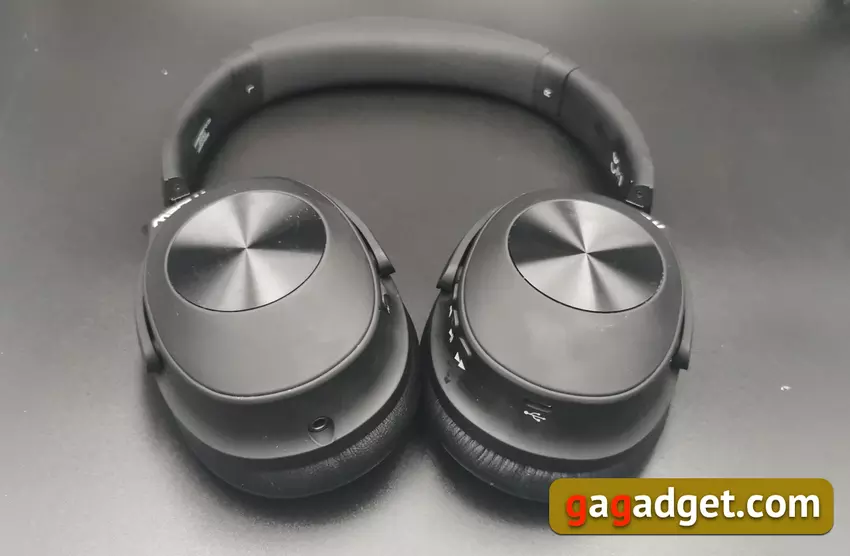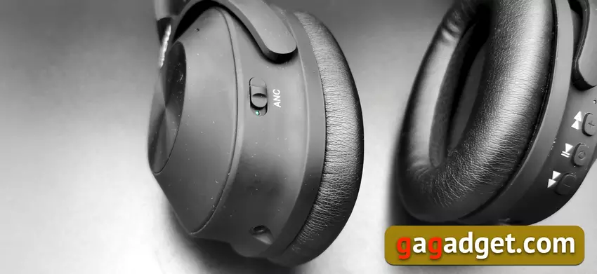 Wejście audio 3,5 mm i przełącznik systemu redukcji szumów znajdują się na lewej słuchawce. Po prawej stronie - złącze ładowania microUSB, przycisk zasilania, klawisze głośności i przewijania oraz kilka diod LED - jedna wyświetla pracę (w trybie pracy parowania miga na niebiesko), druga jest potrzebna do kontrolowania ładowania (gdy świeci na czerwono - ładowanie jest w toku po zakończeniu wyłącza się).