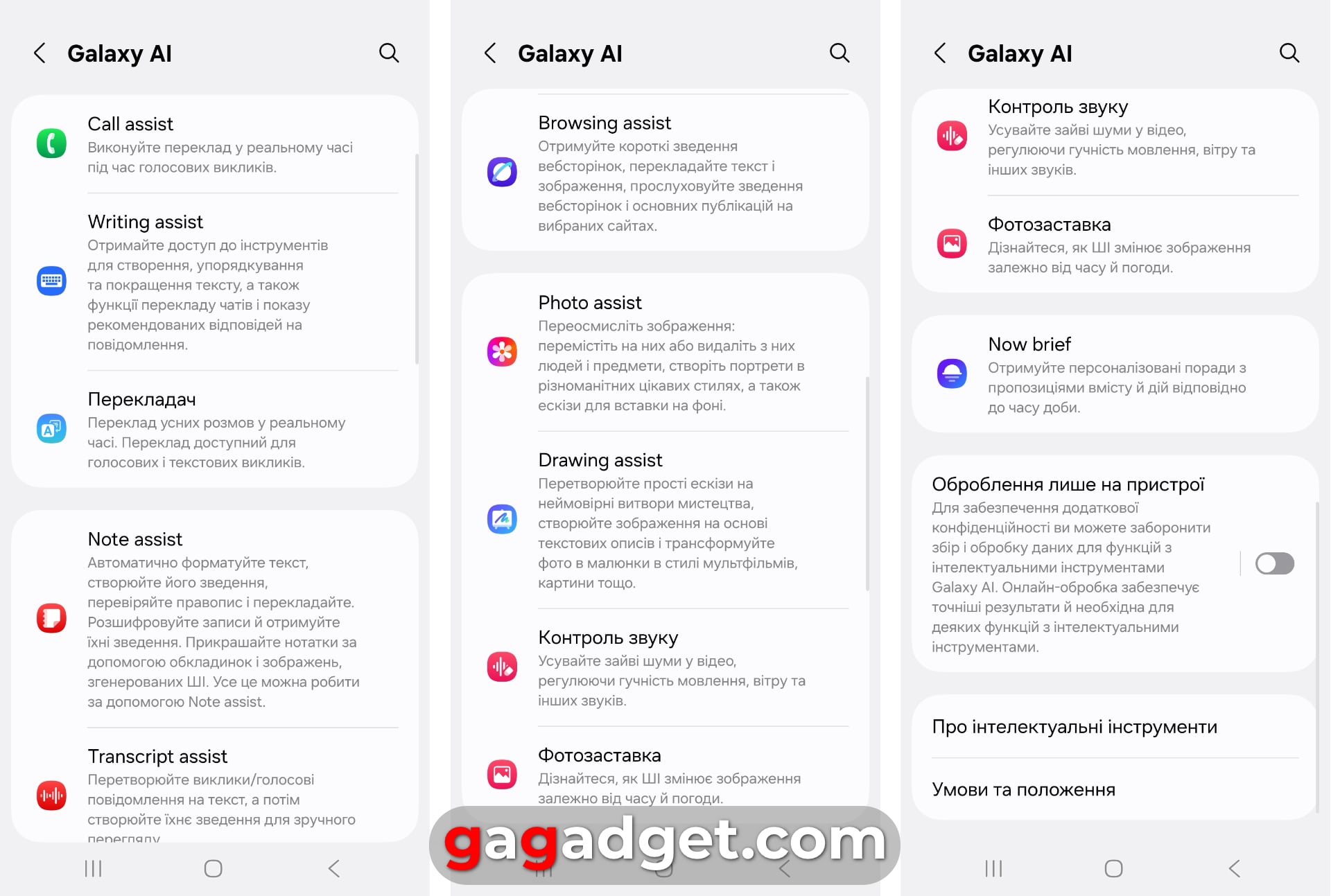 Ustawienia Galaxy AI w smartfonach Galaxy S25. Zrzuty ekranu: gagadget