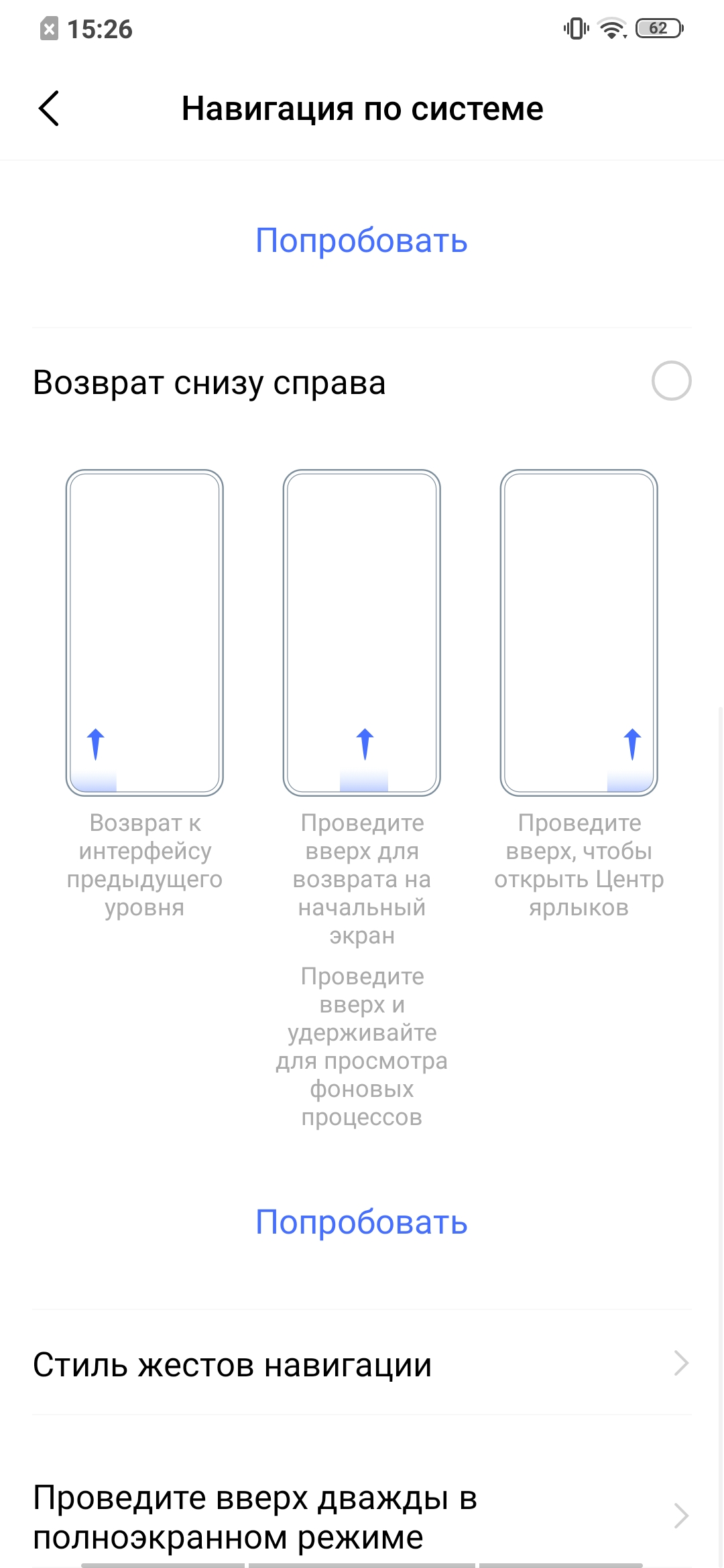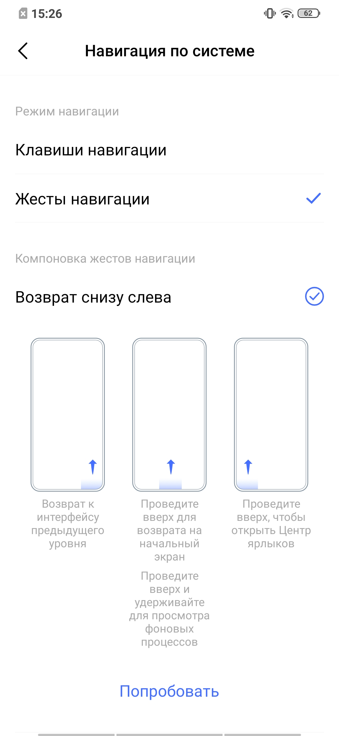 Istnieją różne opcje nawigacji w systemie: przyciski lub gesty. W menu nawigacji systemu możesz wybrać kolejność i styl przycisków lub gestów. W tym możesz całkowicie usunąć notację do sterowania gestami. Jest wizualna instrukcja użytkowania.