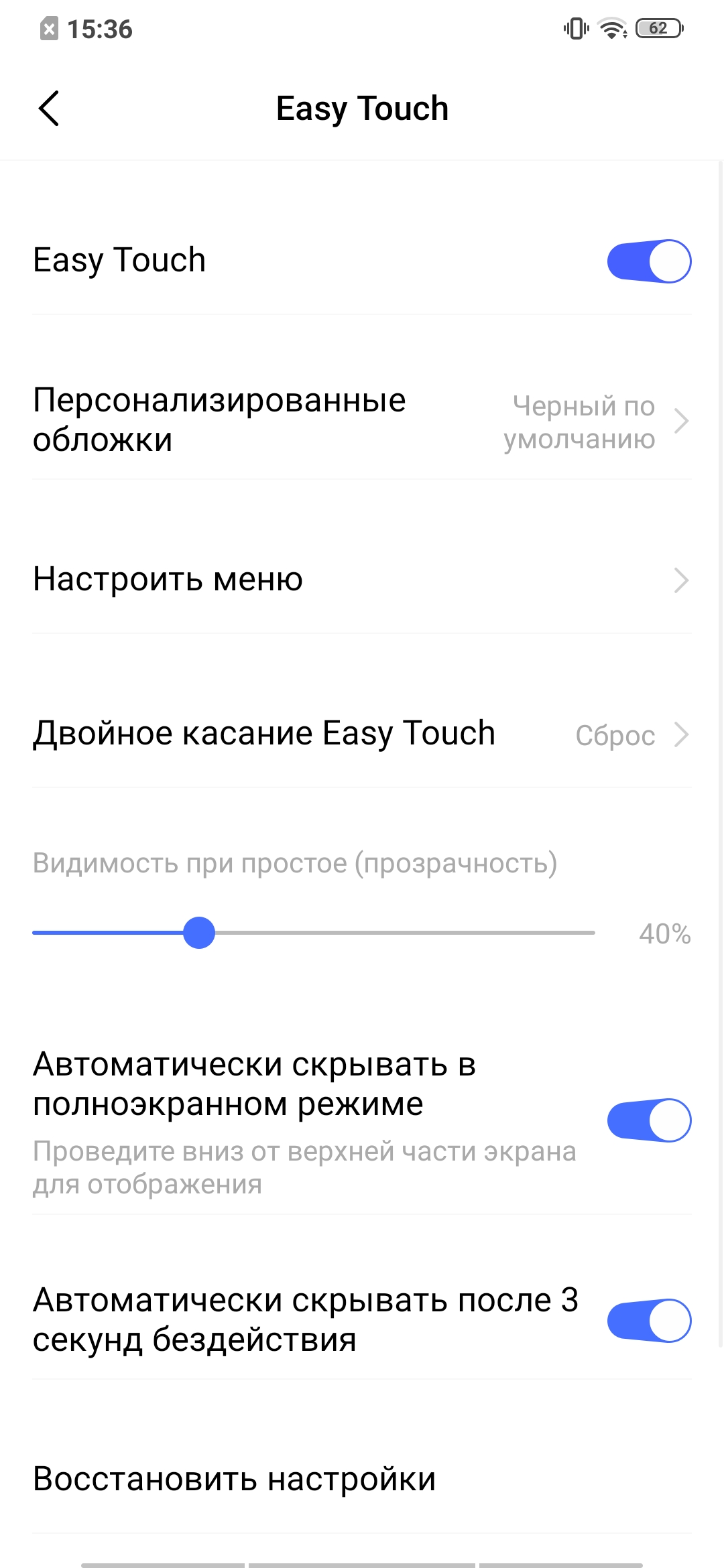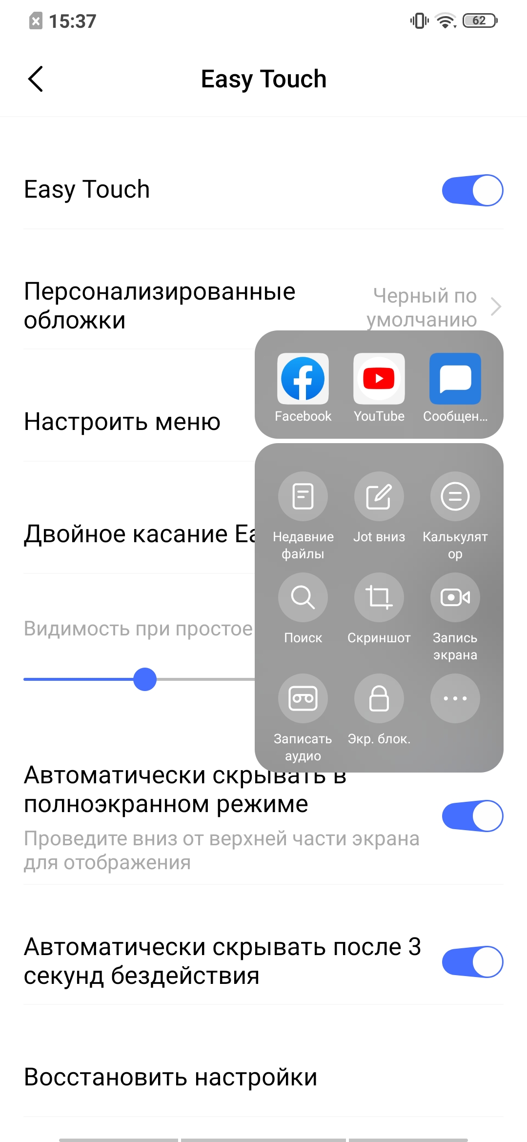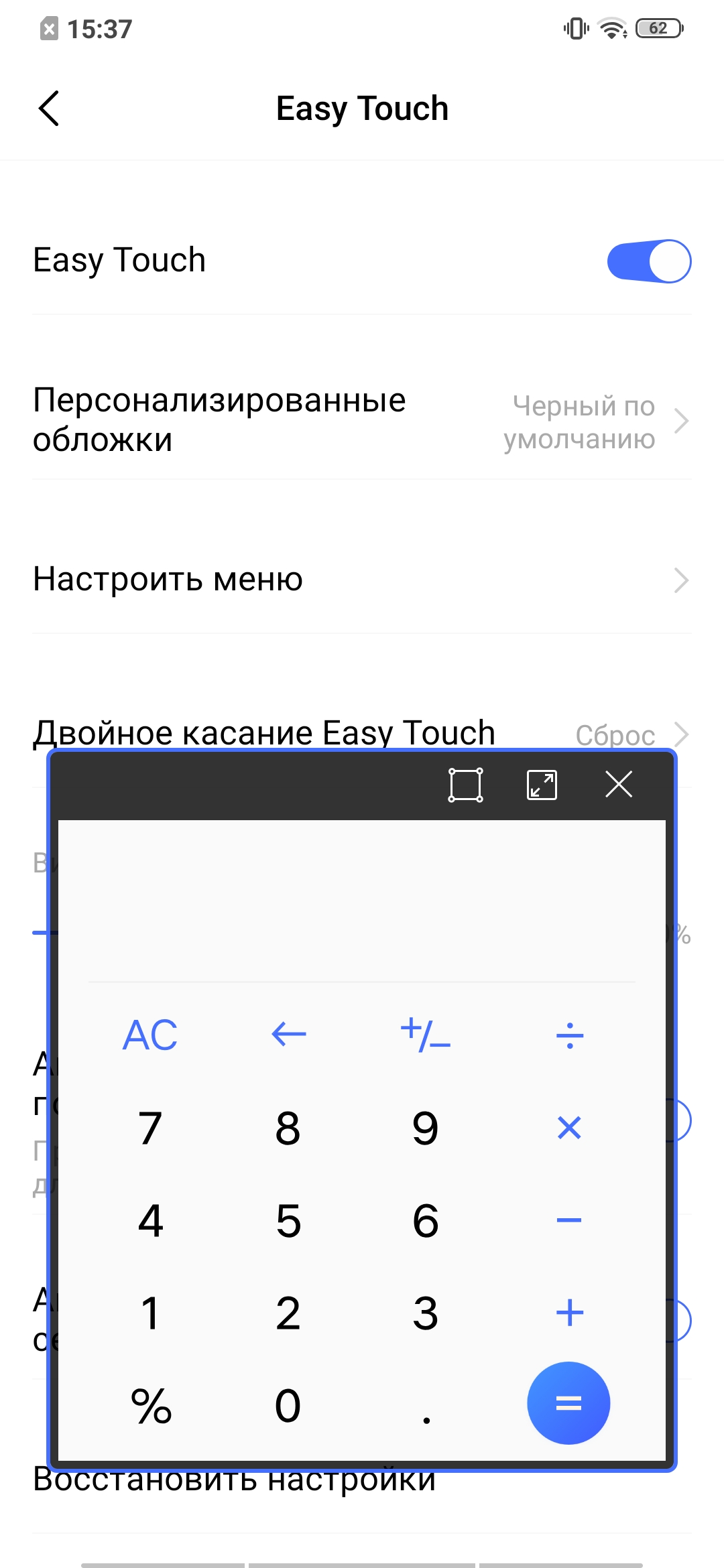 Jest pływający przycisk Easy Touch. Można go przenieść w dowolne wygodne miejsce na ekranie, po kilku sekundach cofa się do krawędzi wyświetlacza i wygląda jak mała półprzezroczysta kropla. Z jego pomocą modne jest włączanie najbardziej niezbędnych aplikacji na wszystkich oknach.