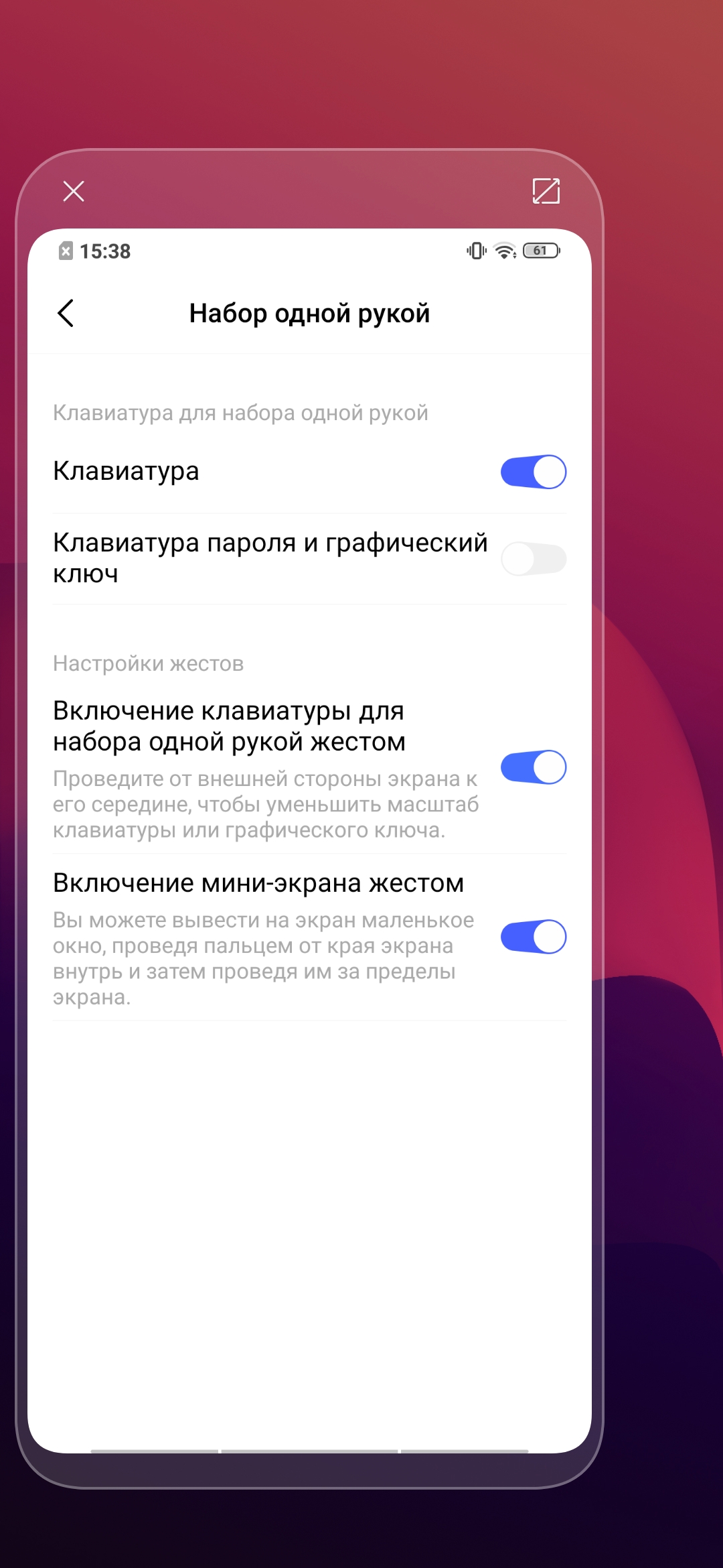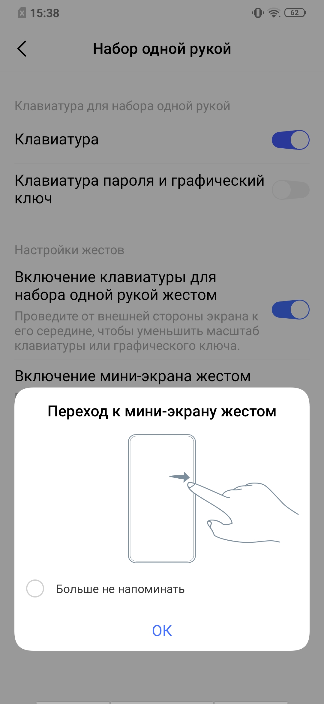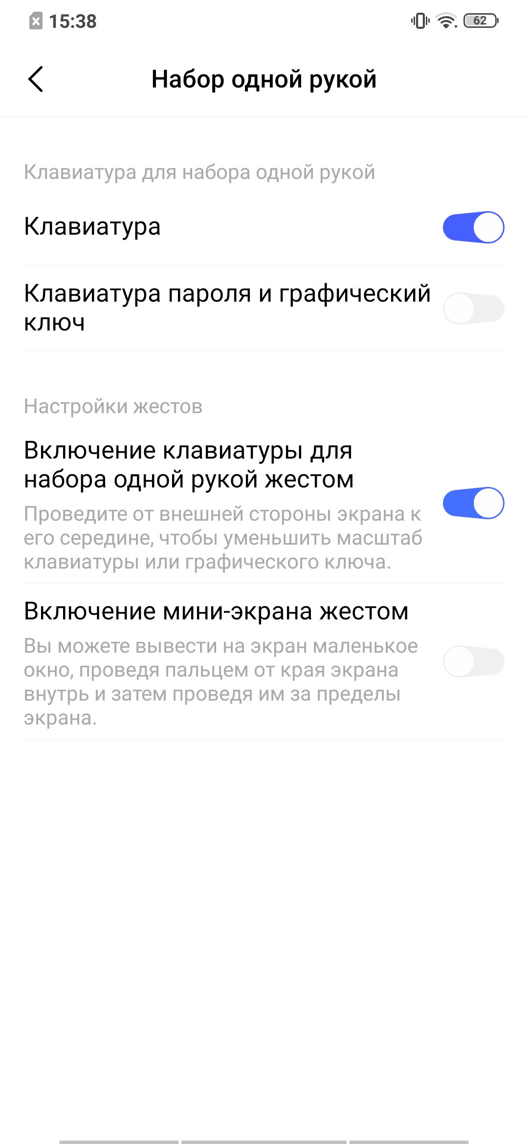 Dla wygodniejszej obsługi jedną ręką dostępny jest tryb skróconego okna z regulowanym rozmiarem oraz klawiatura do wybierania jedną ręką. Jest nieco zmniejszona i przesunięta do pożądanej krawędzi ekranu.
