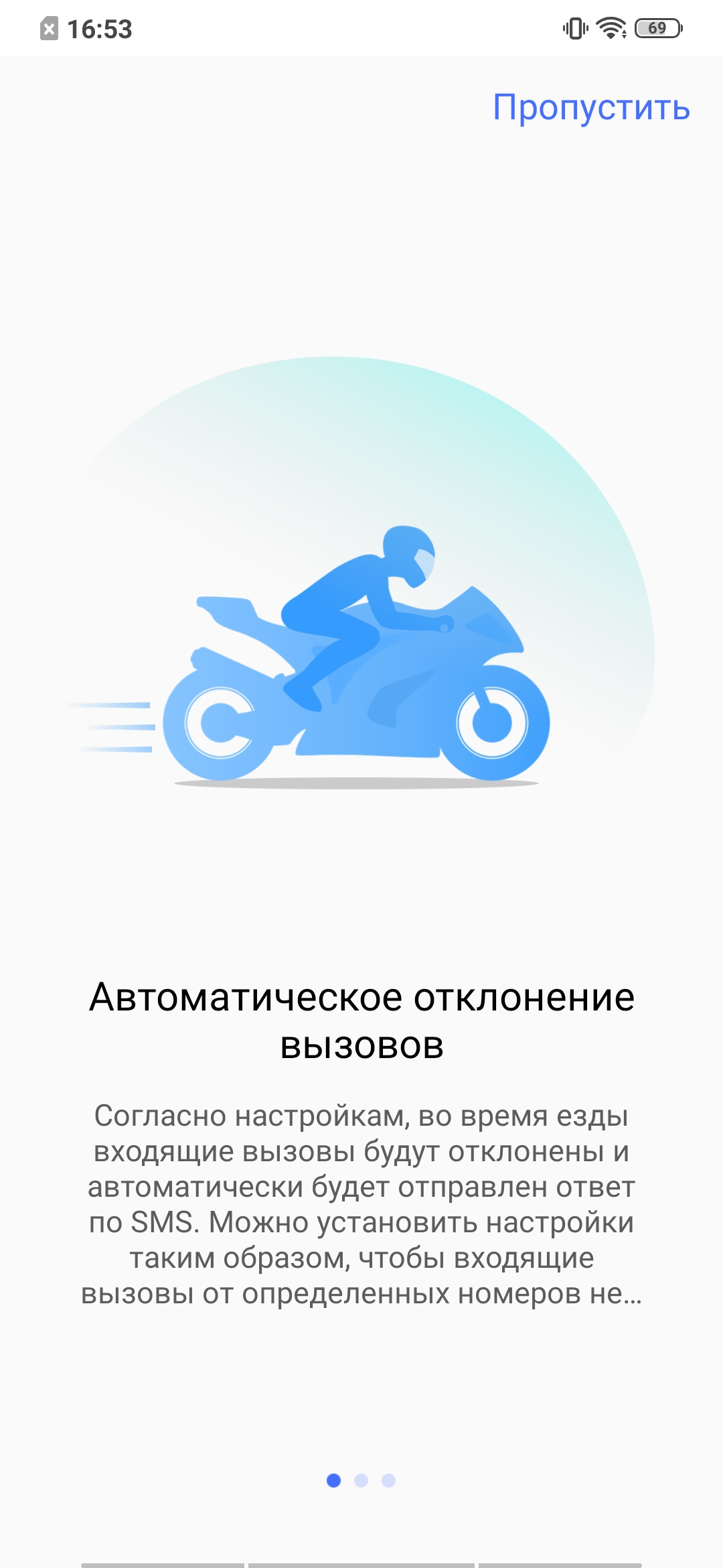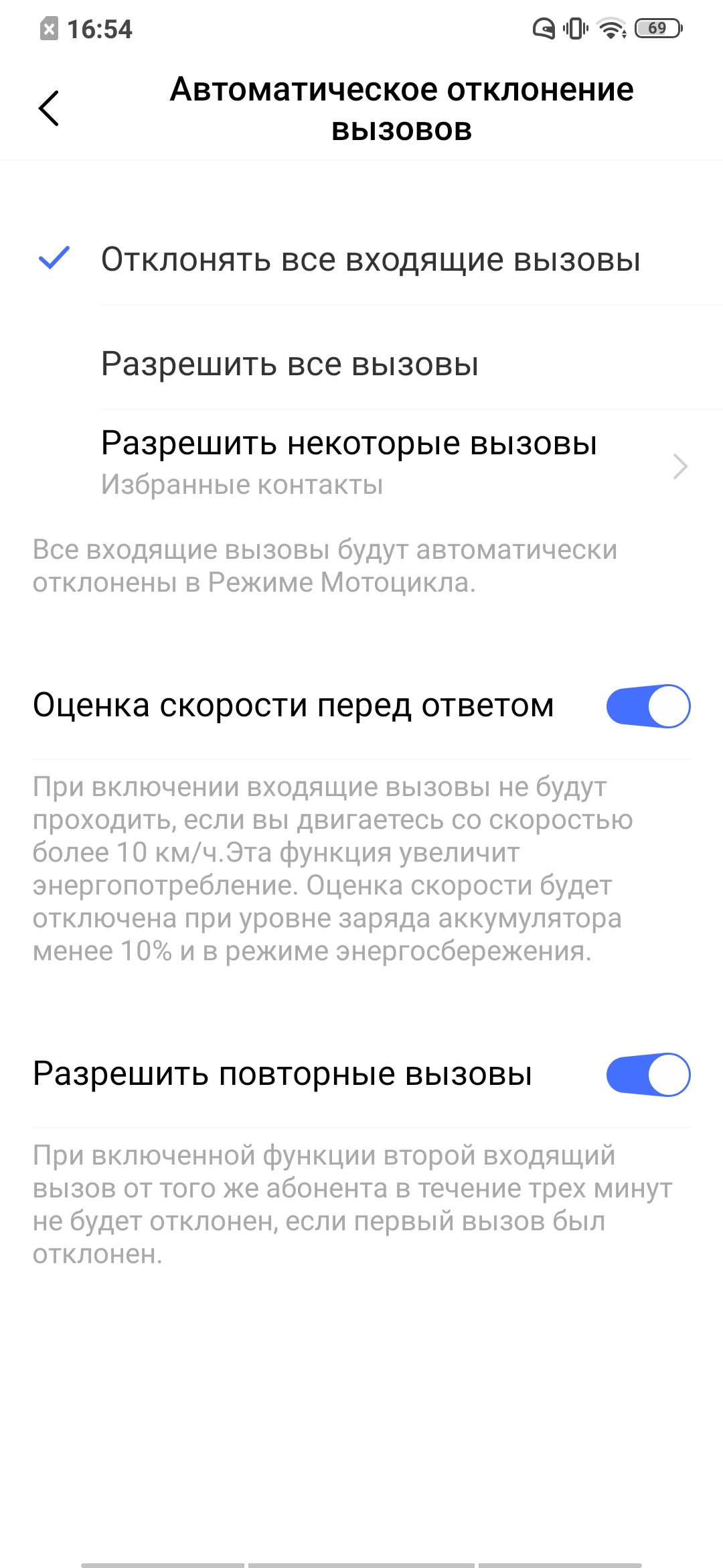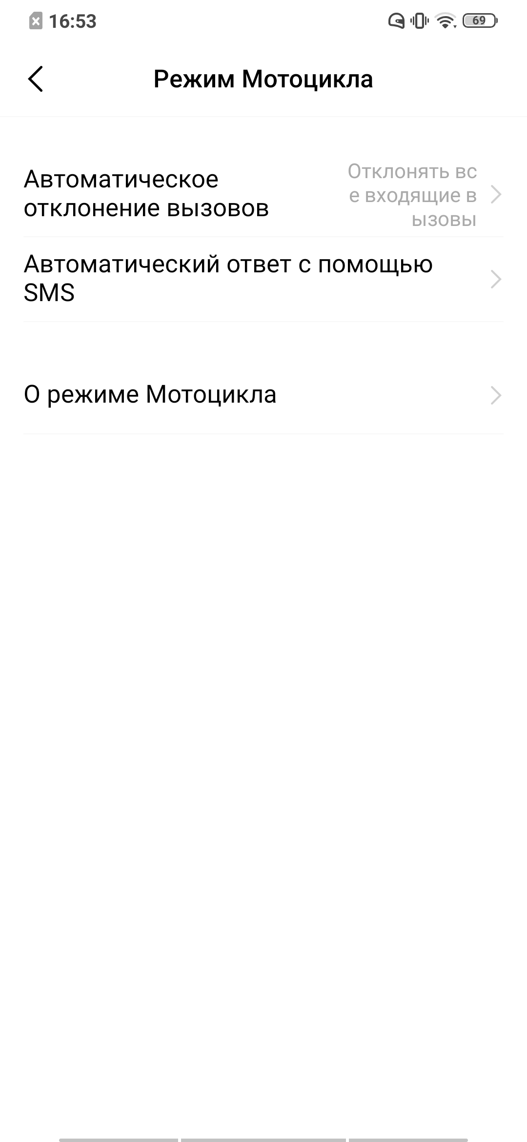 Istniała również zupełnie niezwykła rzecz - tryb motocyklowy. Po skonfigurowaniu możesz ustawić automatyczne odrzucanie połączeń lub automatyczne odbieranie wiadomości SMS. Oszacowano prędkość przed odpowiedzią: przychodzące nie będą rozpraszały przy prędkości większej niż 10 km / h.