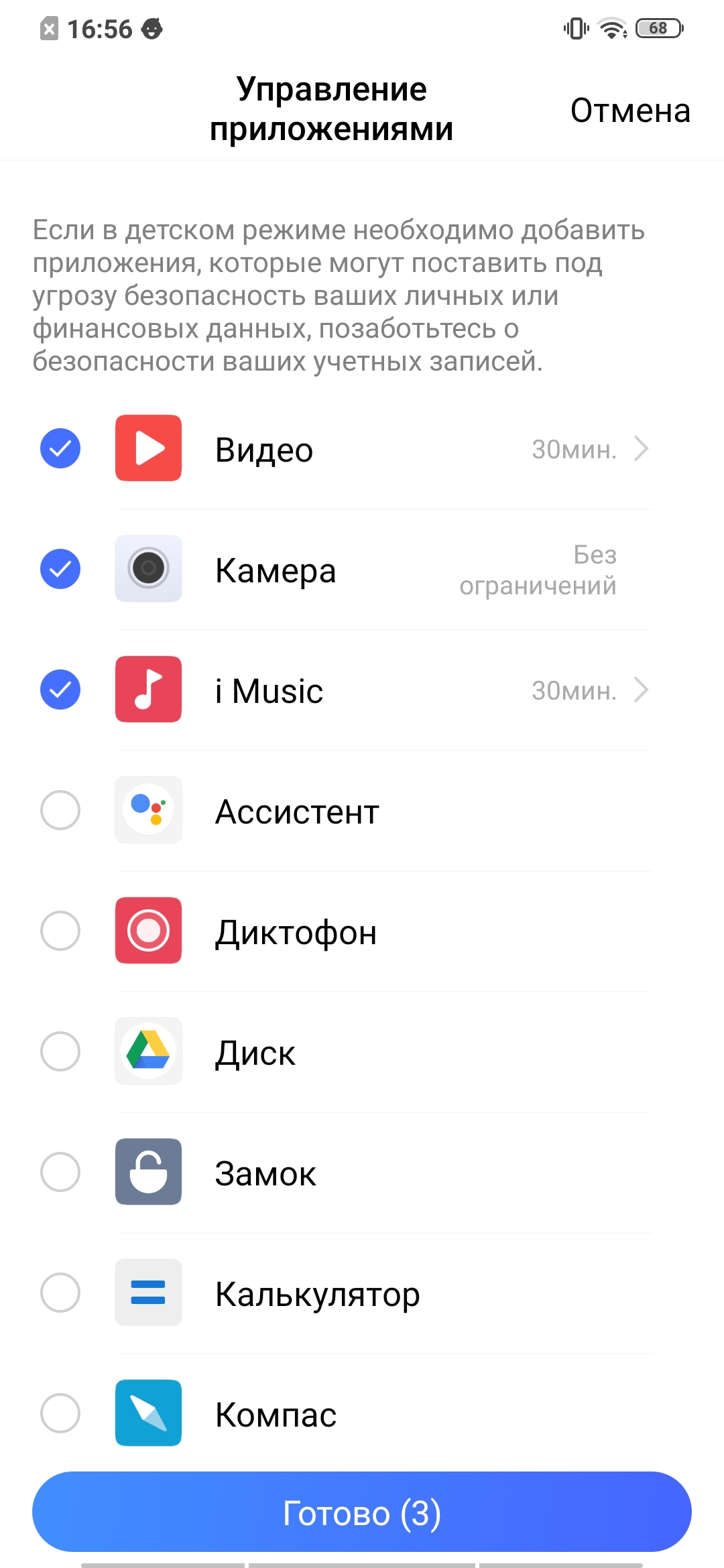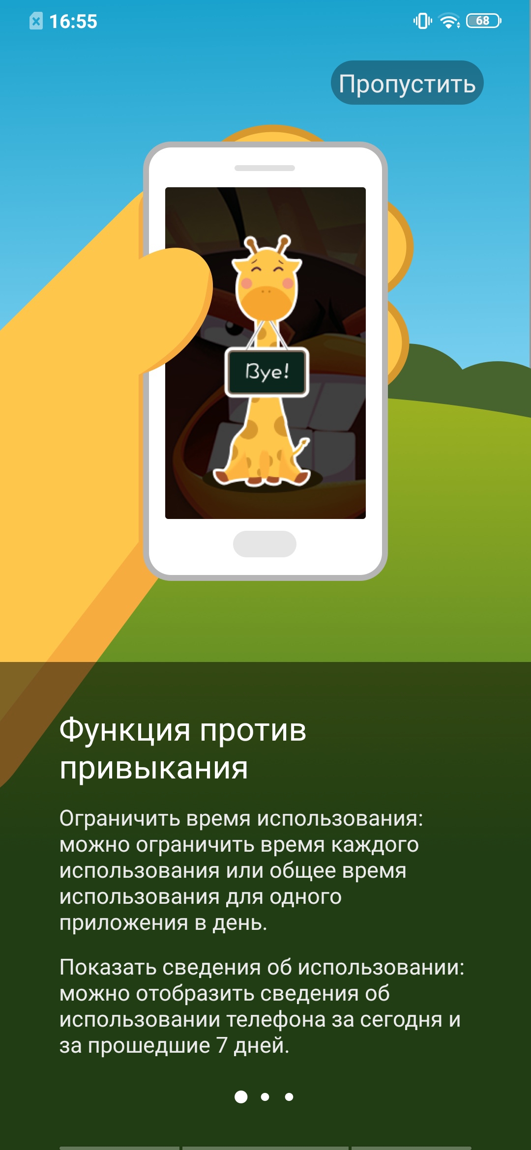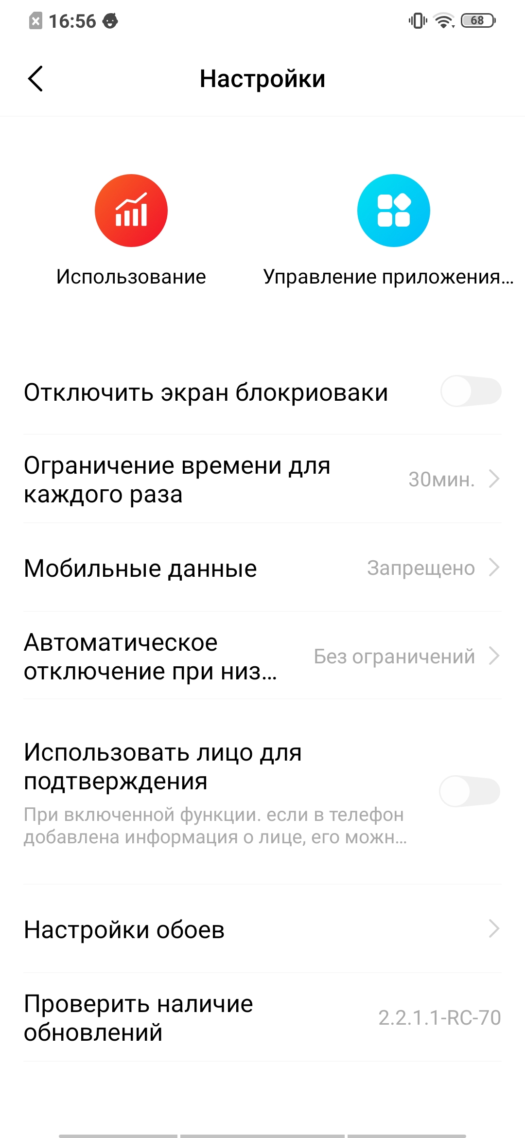 Powłoka zapewnia „tryb dziecięcy”, w którym można ograniczyć wykorzystanie danych mobilnych, udostępnić tylko niektóre aplikacje, ograniczyć i ustawić licznik czasu korzystania z określonej aplikacji i trybu jako całości. Możliwe jest również przeglądanie historii użytkowania aplikacji dla dnia lub tygodnia.