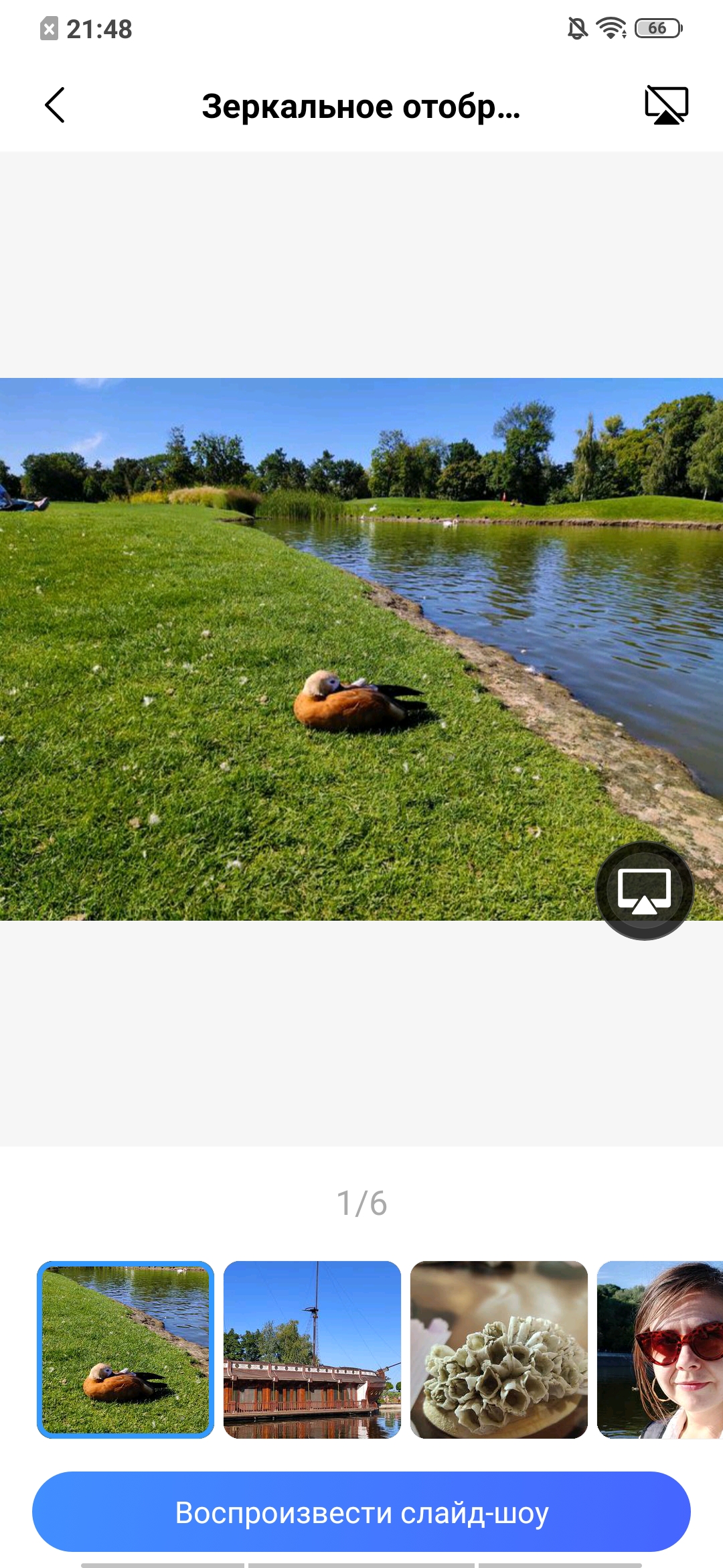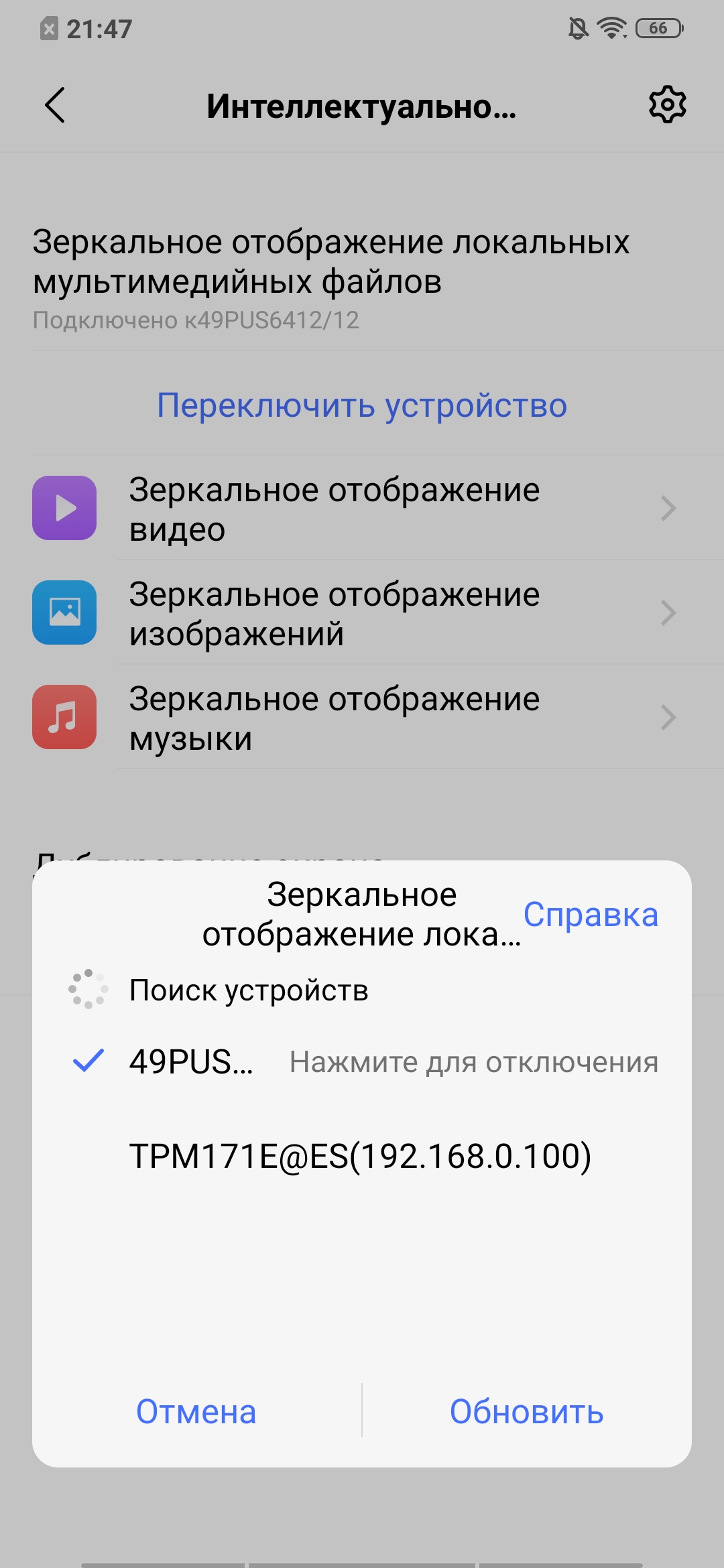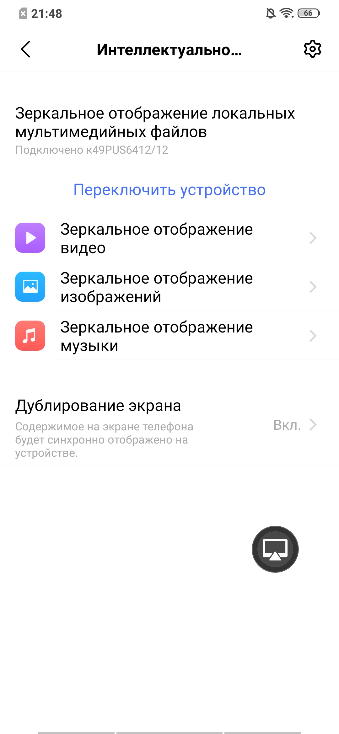 „Inteligentne tworzenie kopii lustrzanych” - nadawanie treści lub powielanie interfejsu smartfona na ekranie telewizora. Jest wykonany wyraźnie i nie wymaga żadnych dodatkowych manipulacji. Kompatybilny telewizor (jeśli występuje) jest wykrywany automatycznie.