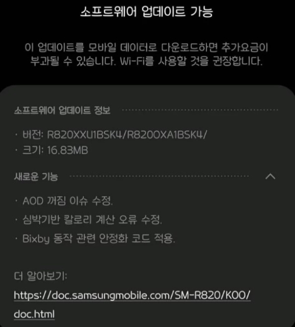 To niewielka aktualizacja, w której pracowaliśmy nad naprawą błędów i optymalizacją systemu. Na przykład oprogramowanie sprzętowe naprawiło problem z okresowym wyłączaniem trybu Always-On Display. Ponadto programiści firmy poprawili odczyt kalorii za pomocą czujnika tętna i pracy zastrzeżonego asystenta Bixby.