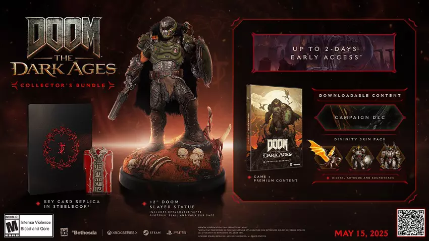 Doom: The Dark Ages Collector's Bundle kosztuje 200 dolarów i zawiera nie tylko wszystkie bonusy Edycji Premium, w tym dwudniowy wczesny dostęp, ale także fizyczne przedmioty kolekcjonerskie.