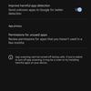 Ochrona przed złośliwym oprogramowaniem została wzmocniona ze względu na przypadki, w których oszuści próbowali wpływać na użytkowników, przekonując ich do wyłączenia Play Protect podczas połączeń, co umożliwiało instalowanie złośliwego oprogramowania z niezweryfikowanych źródeł. Teraz, jeśli użytkownik otrzyma prośbę o wyłączenie skanowania aplikacji, system ostrzeże go, że może to być oszustwo.