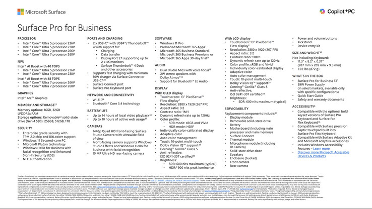 Inne funkcje nowego Surface Pro obejmują wybór wyświetlaczy OLED, układ NFC (po raz pierwszy w serii) i preinstalowany system Windows 11 Pro. Microsoft twierdzi również, że żywotność baterii wynosi do 14 godzin, ale dokładna pojemność baterii jest nadal nieznana. Zachowano również obsługę rysika Surface Pen i odłączanej klawiatury.