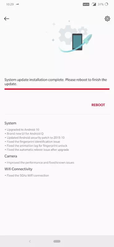 Producent wydał nowe oprogramowanie o numerze OxygenOS 10.0.1. Aktualizacja waży 1,8 GB lub 50/74 MB (dla tych, którzy otrzymali pierwszą wersję oprogramowania). Nowy system zawiera wszystkie główne funkcje Androida 10, poprawkę bezpieczeństwa na październik i wiele innych poprawek. Na przykład programiści naprawili problem ze skanerem linii papilarnych, animacją logo skanera, a także poprawili kamerę i Wi-Fi w paśmie 5 GHz.
