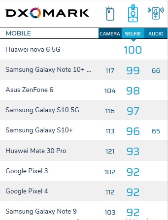 W rezultacie aparat selfie Huawei Nova 6 5G otrzymał 105 punktów za zdjęcie i 93 za wideo. Średnia ocena wynosi 100 punktów i jest to jak dotąd najlepszy wynik.