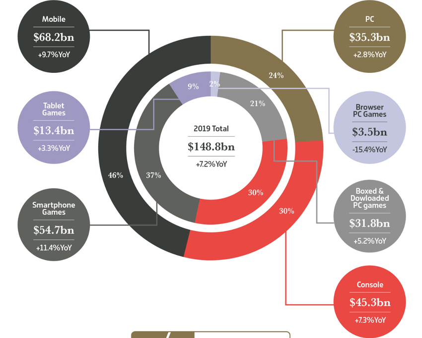 W 2019 r. Branża gier zarobiła 148,8 mld USD, czyli o 7,2% więcej niż w 2018 r.