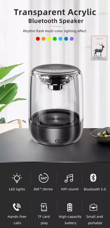 Bezprzewodowa kolumna z podswietleniem NBY C7 z przezroczystą obudową i Bluetooth 5.0 za $ 12