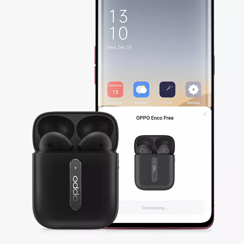 Są to słuchawki bezprzewodowe, prawie identyczne w konstrukcji jak Apple AirPods. Podobnie jak zestawy słuchawkowe "jabłkowe", Oppo Enco Free ma ładujący futerał.