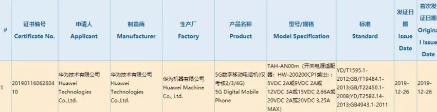 Nowy elastyczny smartfon otrzymał już certyfikat od chińskiego regulatora 3C. W bazie danych przechodzi pod numerem TAH-AN00m.