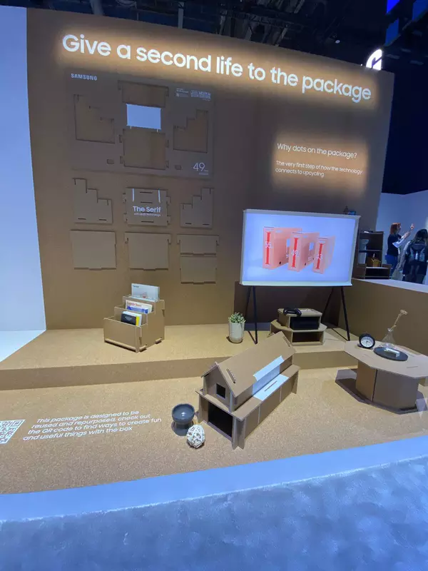 Samsung sugeruje, aby nie wyrzucać pudeł na wysypiska śmieci, ale zrobić z nich meble i akcesoria domowe. Na przykład stolik nocny, półka na rzeczy lub dom dla zwierzaka.