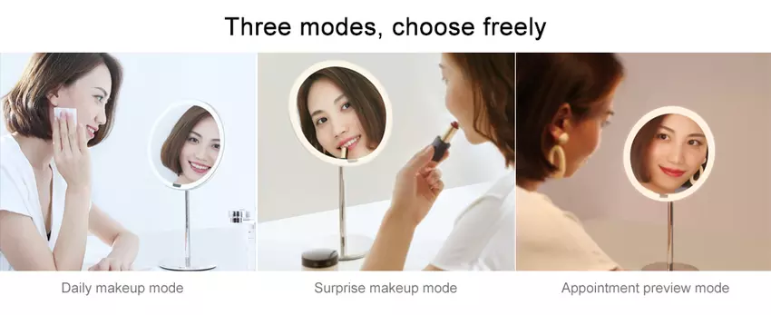 7-calowe, metalowe lustro z podświetleniem. Dzięki czujnikowi podczerwieni podświetlenie autodetekcji włączy się, jeśli zbliżysz się do niego, wyłączy się w ciągu 10 sekund po wyjściu osoby. Wbudowana bateria 1900 mAh, ładowana przez port micro-USB. Brakuje Wi-Fi. Głowica zmienia kąt nachylenia, podstawa jest metalowa. W sumie istnieją trzy tryby podświetlenia: Daily makeup, Surprise mode, Appointment preview mode, przełączane za pomocą przycisku z tyłu.