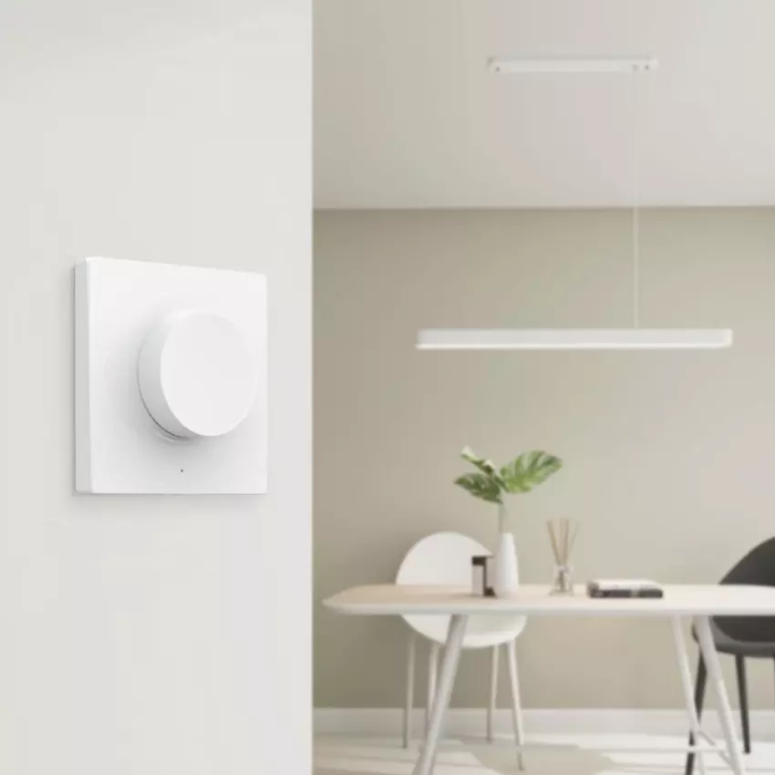 Dzięki niemu nie trzeba używać aplikacji na smartfonie, aby zmienić jasność, temperaturę barwową lub kolor samego blasku. „Pokrętło” z przyciskiem pozwala to zrobić bez wysiłku, zdecydowanie wystarczą dwa palce. Ściemniacz komunikuje się z podłączoną lampą przez Bluetooth, dostępne są dwie wersje: