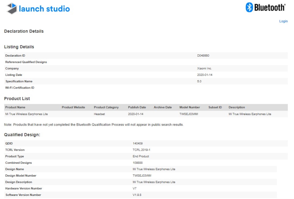 Nowość zauważono w bazie danych agencji certyfikacyjnej Bluetooth SIG o numerze modelu TWSEJ03WM. Słuchawki, sądząc po nazwie, staną się uproszczoną wersją zwykłych bezprzewodowych słuchawek Mi True (inna nazwa Xiaomi Mi AirDots Pro). Otrzymają moduł Bluetooth 5.0.