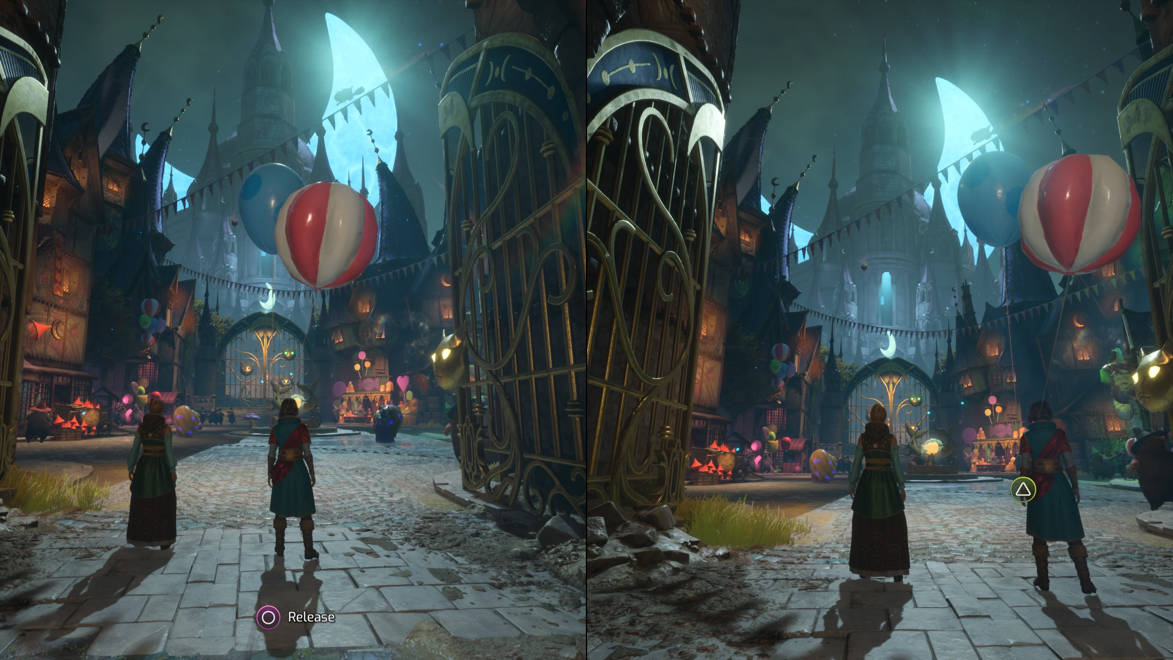 Oprawa wizualna w Split Fiction jest niesamowita. Podobnie jak w przypadku rozgrywki, gra nieustannie zmienia obraz i przez cały czas można zobaczyć nowe, piękne lokacje. I wykonali świetną robotę ze szczegółami. Poziomy sci-fi są wypełnione neonami, wysokimi budynkami, różnymi znakami, niekończącym się strumieniem samochodów i jasnymi efektami, które są stale widoczne na ekranie. Poziomy fantasy również mają dużą skalę, ale neony i drapacze chmur zostały zastąpione wspaniałymi zamkami, gęstymi lasami, posągami i harmonijnym połączeniem natury, gdy zimowa łąka pokryta jest czerwonymi liśćmi.
