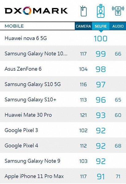 Pomimo tego, iPhone 11 Pro Max - jest jedynym przedstawicielem Apple w pierwszej dziesiątce zestawienia DxOMark.