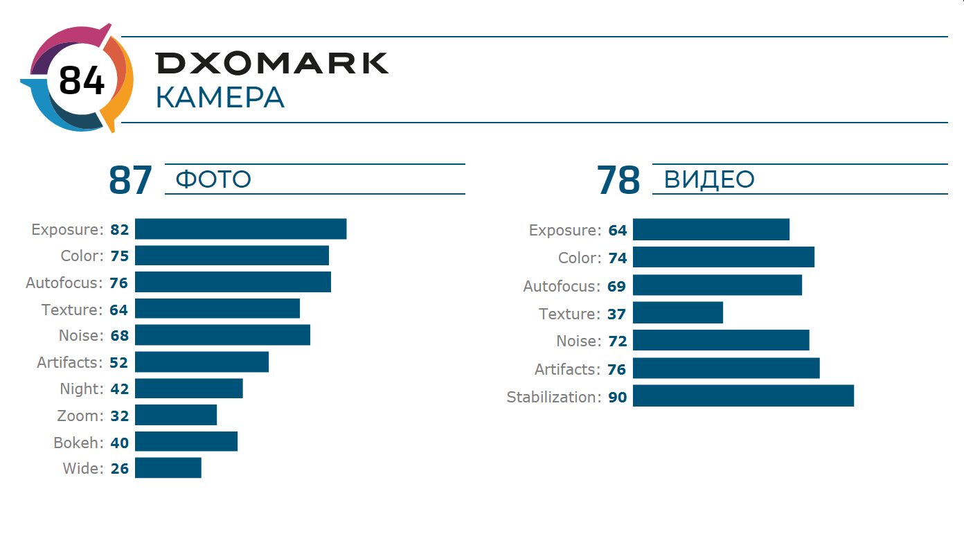 W rezultacie Redmi Note 8 Pro ma 87 punktów za zdjęcie i 78 punktów za wideo. Średnia ocena to 84.