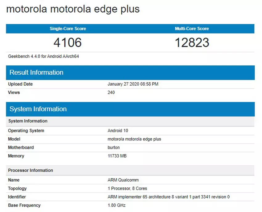 Flagowy Motorola Edge+ dostrzeżone w Geekbench z układem Snapdragon 865, 12 GB RAM i OS Android 10