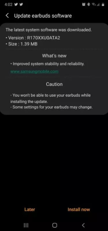 Według SamMobile oprogramowanie wewnętrzne wyszło z numerem kompilacji R170XXU0ATA2 i waży tylko 1,39 MB. W nim programiści pracowali nad stabilnością systemu. Ponadto naprawili zewnętrzne dźwięki podczas włączania i wyłączania połączenia, a także naprawili problem z podłączeniem do słuchawek.