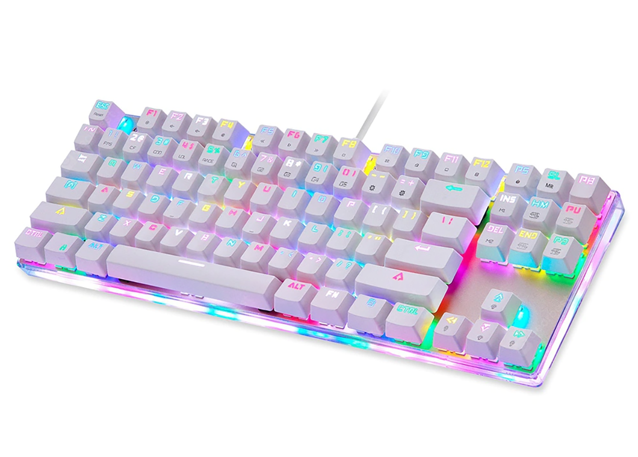 Chińska firma Motospeed ugruntowała swoją pozycję na budżetowym rynku mechanicznych klawiatur od 2008 roku i wciąż jest na szczycie pod względem sprzedaży. Dzisiejszym przedstawicielem w naszym topie jest K87S, „skrócona” wersja klasycznego K87. Ta klawiatura jest wykonana ze stopu aluminium i jest wyposażona w przełączniki Outemu, oczywiście nie Cherry MX, ale także nie bez nazwy. Przezroczyste znaki na klawiszach są bardzo wygodne - z włączonym podświetleniem (ma bardzo szerokie opcje dostosowywania w K87S), jest bardzo wygodny do pracy i zabawy w dowolnym świetle. Ponadto, anty-hosting działa na wszystkich klawiszach, to znaczy, gdy kilka klawiszy zostanie naciśniętych jednocześnie, wszystkie zostaną zarejestrowane przez system bez stwarzania problemów: funkcja, która jest dość powszechna w nowoczesnych klawiaturach, ale często ma ograniczoną liczbę klawiszy.