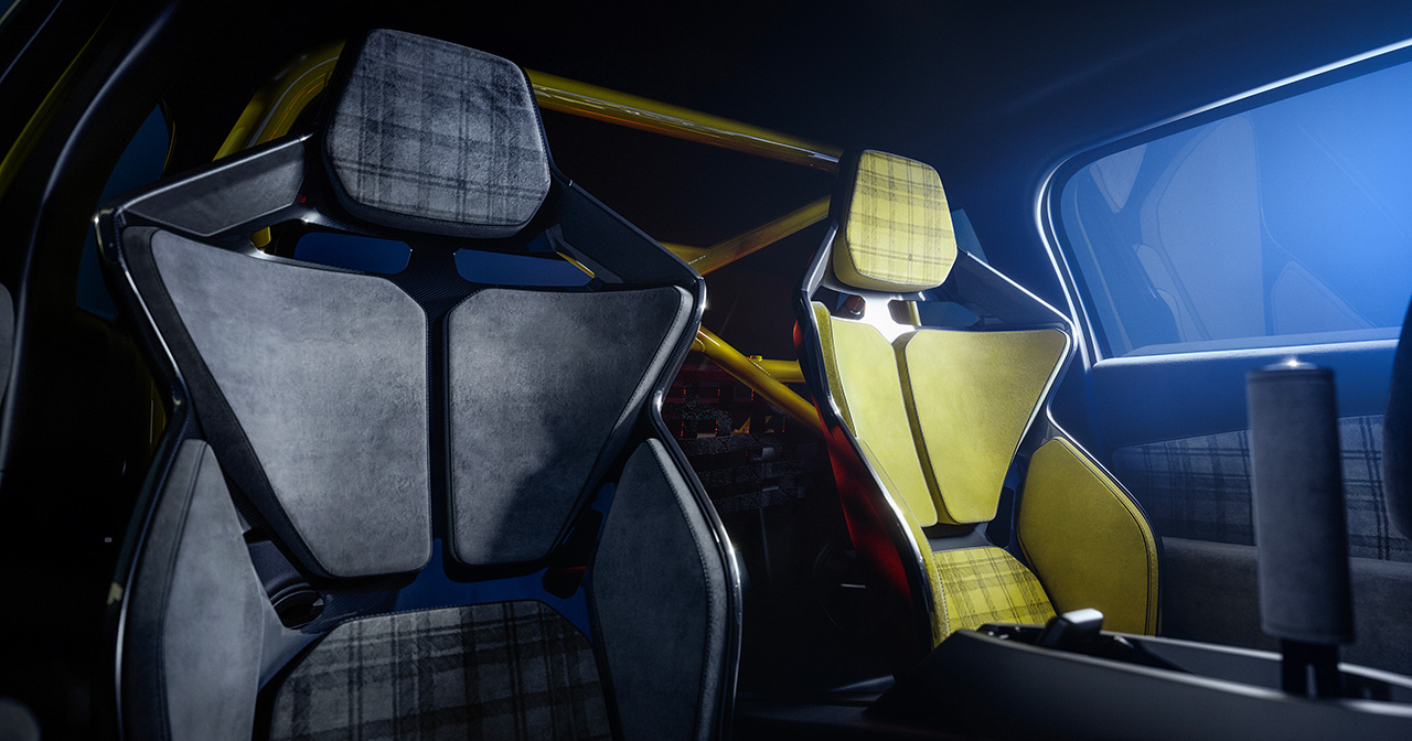"Elektryczny hiper hatchback" otrzymał cztery tryby sterowania (Snow, Regular, Sport i Race), funkcję wspomagania driftu, sportowe fotele z sześciopunktowymi pasami bezpieczeństwa, a nawet klasyczny "rajdowy" pionowy hamulec ręczny.