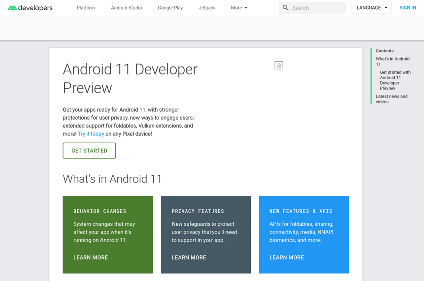 Na oficjalnej stronie firmy pojawiła się strona poświęcona Android Developer Preview. Oczywiście po pewnym czasie została usunięta, ale edycja Android Police zachowała zrzut ekranu. Niestety na stronie nie było żadnych informacji o funkcjach nowego „zielonego robota”, wspomniano tylko, że system otrzyma ulepszone ustawienia prywatności, nowe funkcje i zaktualizowane interfejsy API.